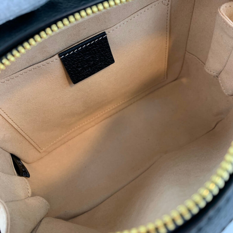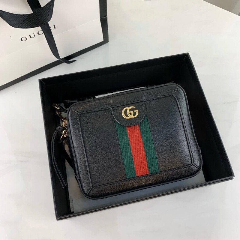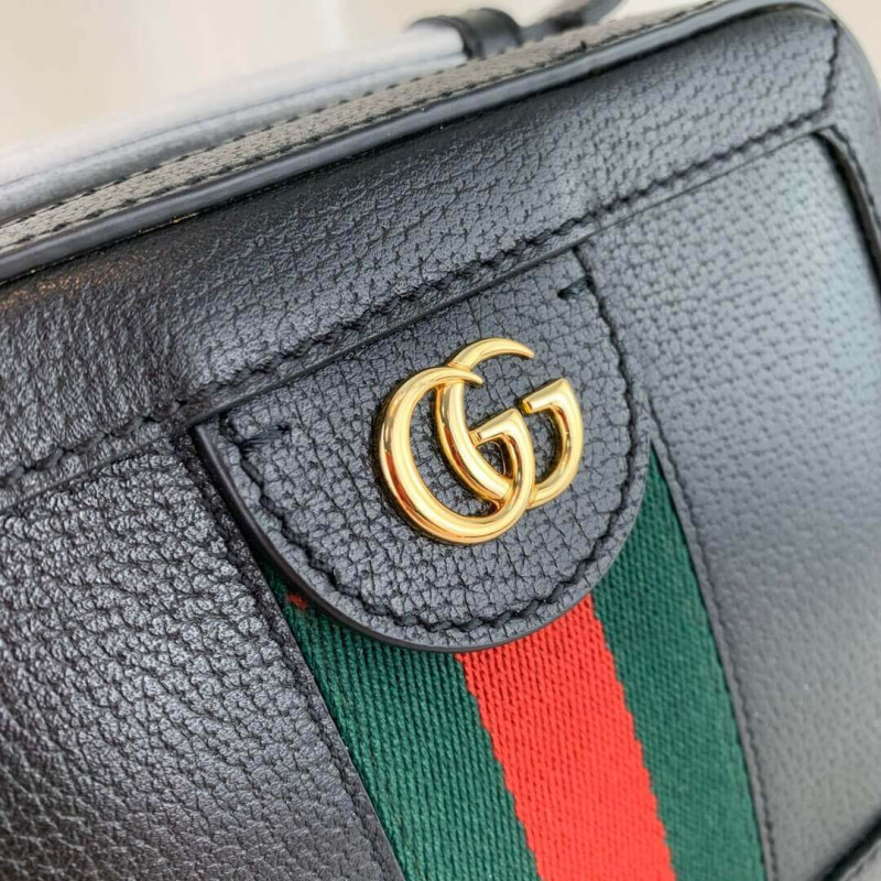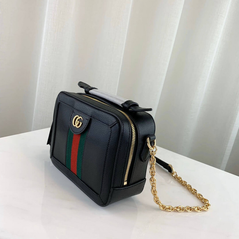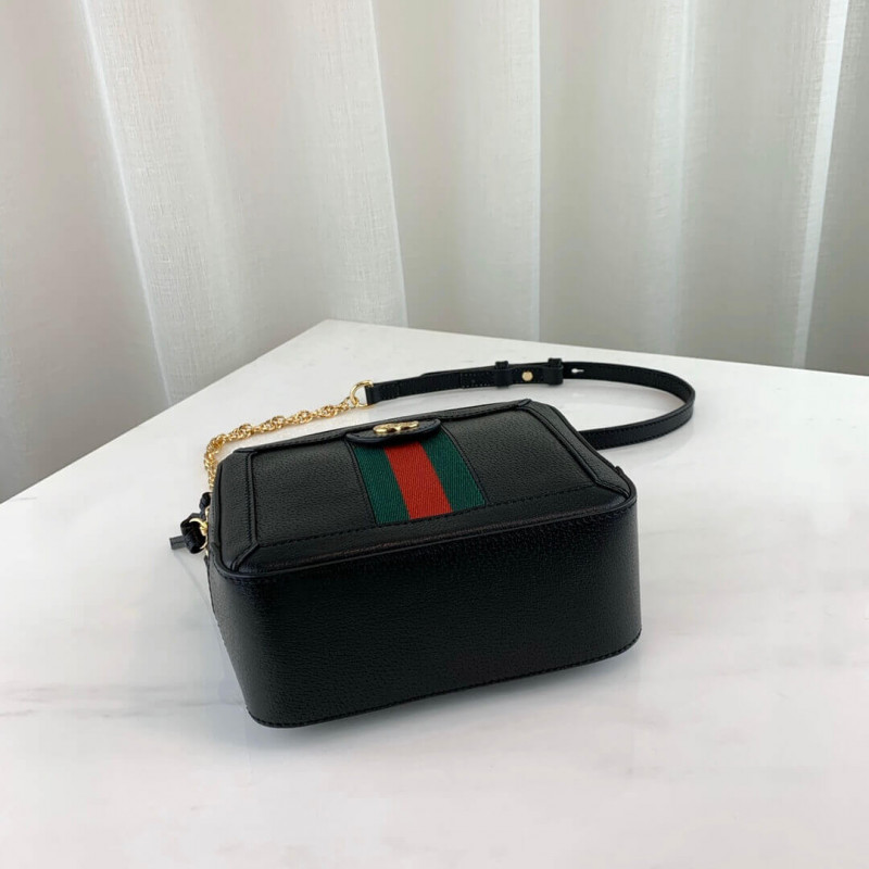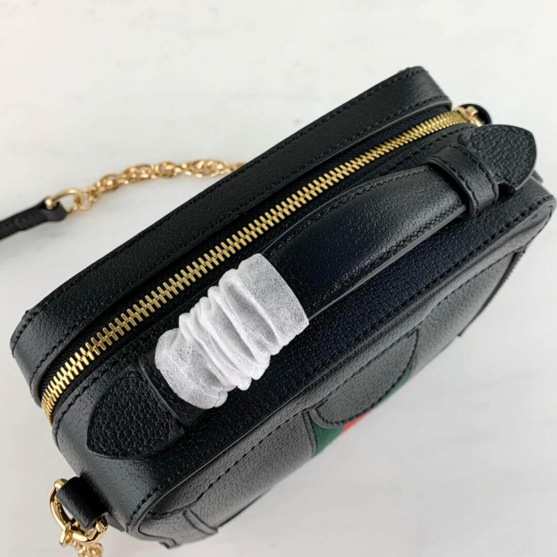 The world of Ophidia continues to evolve with the introduction of new shapes for Cruise 2020, including the mini shoulder bag in textured white leather. Trimmed with the green and red Web stripe, the style is completed a gold-toned Double G distinctive of the line. A leather top handle and chain shoulder strap lend a multifunctional element to the shape.