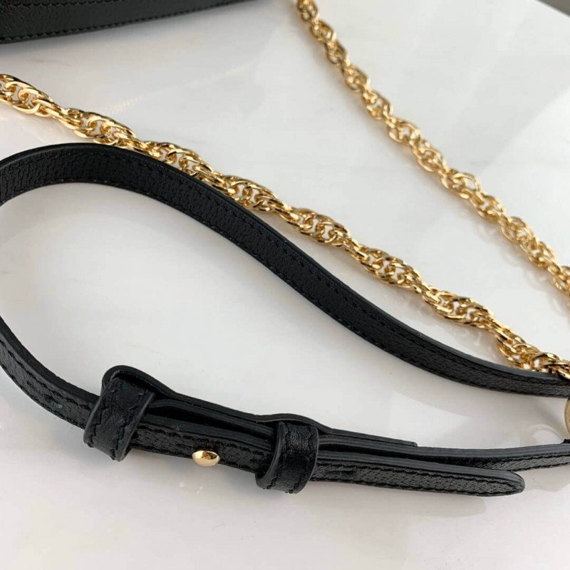 - Adjustable chain and leather shoulder strap with 24.4" drop