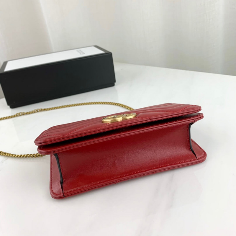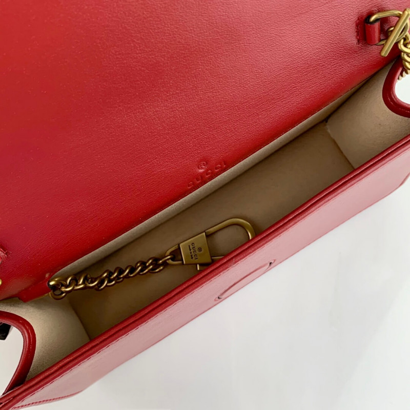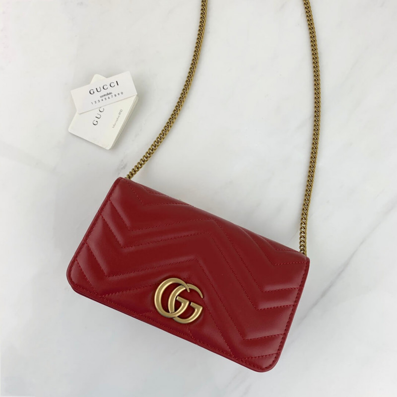 The GG Marmont chain mini bag has a softly structured shape and oversized flap closure with Double G hardware. The hardware is inspired by an archival design from the 70s. Made in matelassé chevron leather.