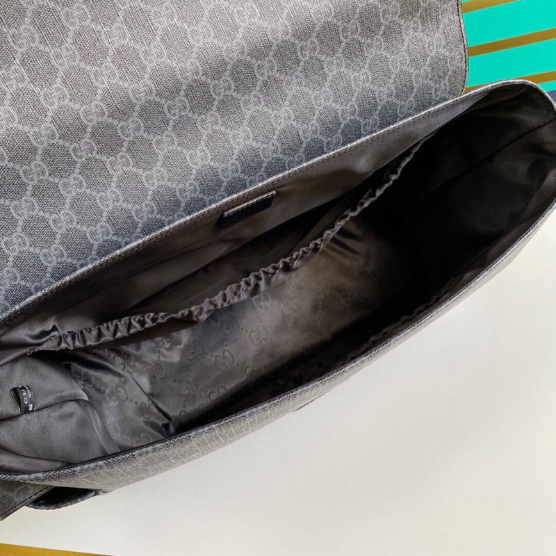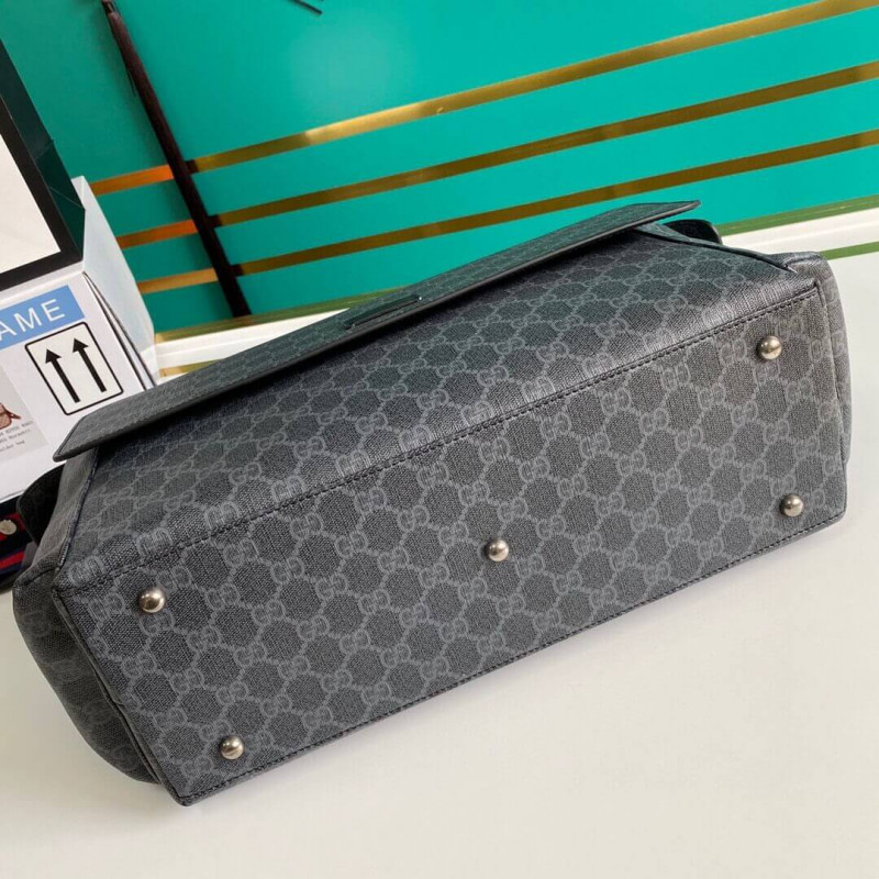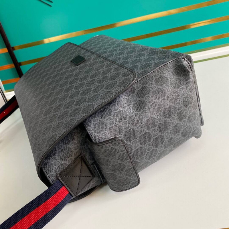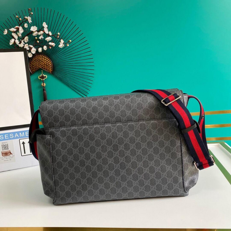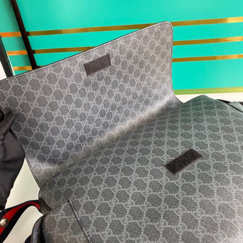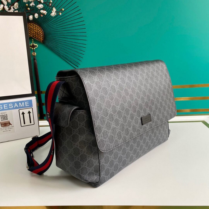 A diaper bag crafted from GG Supreme canvas is animated by a print that recalls outer space–a theme used throughout Gucci s collections. Set against the House s emblematic monogram motif, the diaper bag is defined by spaceships, stars, and images from the galaxy. Outer space continues to influence Gucci s latest collections in new, whimsical ways.