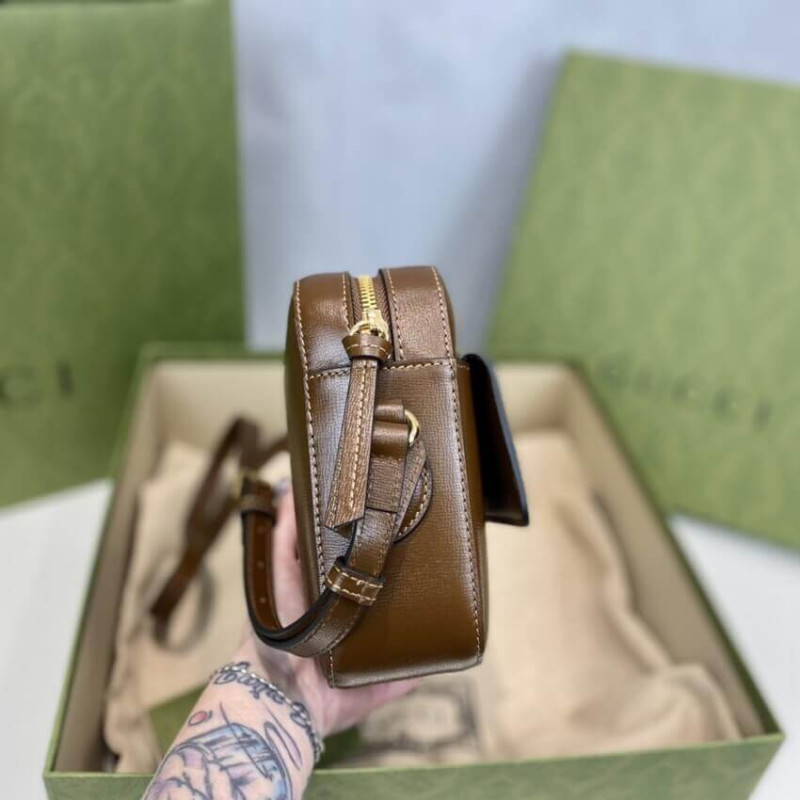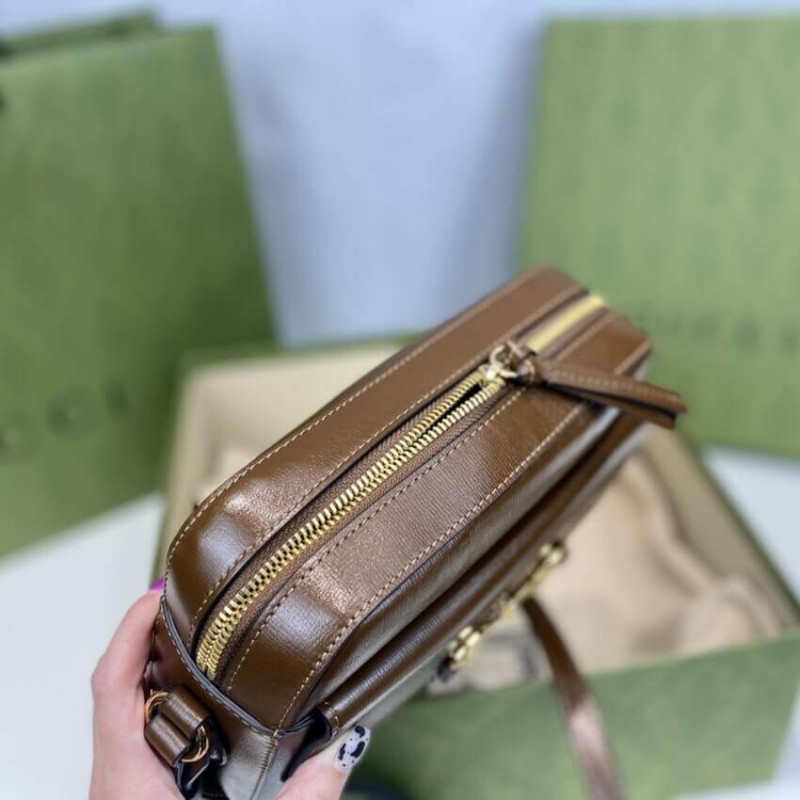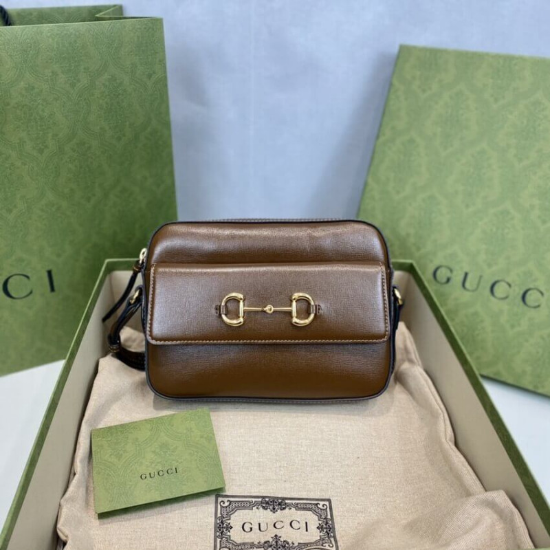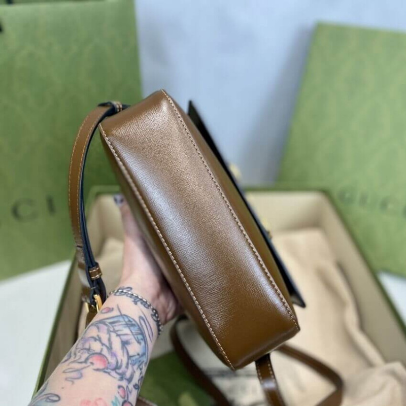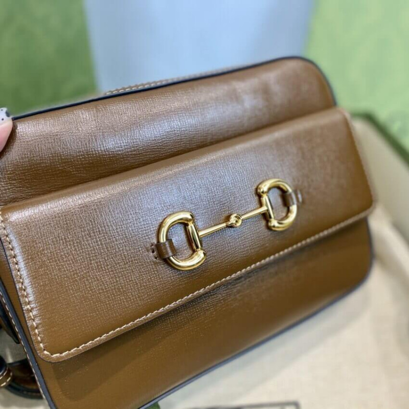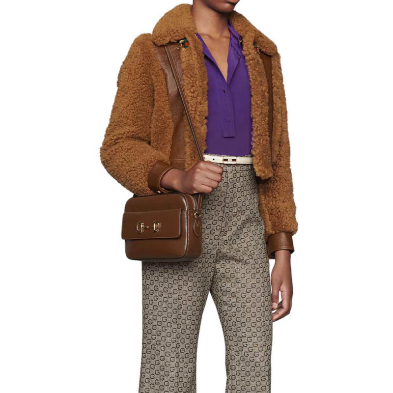 The Horsebit has become synonymous with the brand. Tracing back to Gucci s equestrian roots, the double ring and bar design is a piece of the House s heritage. The Epilogue collection s Gucci Horsebit 1955 unifies this original details first introduced over six decades ago with a modern spirit in a small brown textured leather shoulder bag completed by a special mechanism that adjusts the length of the shoulder strap so it can be carried on one shoulder or cross body.