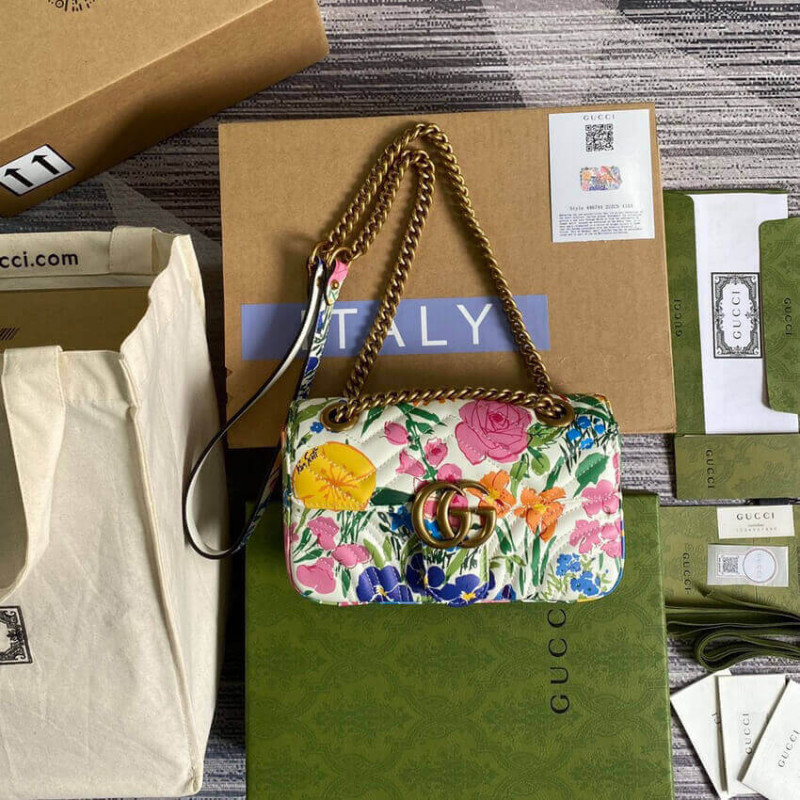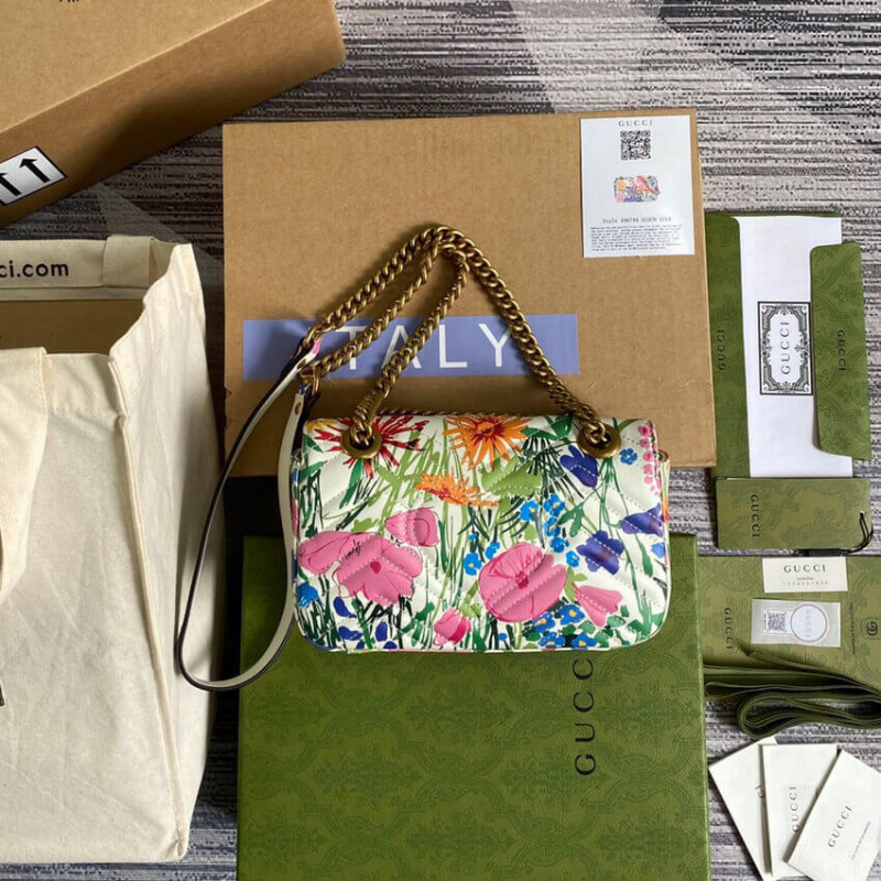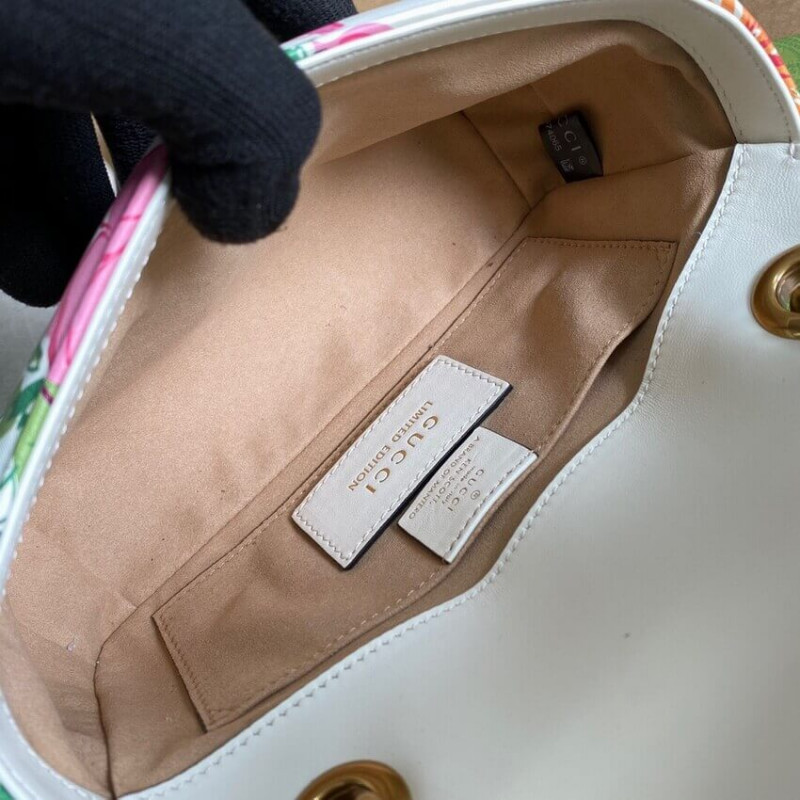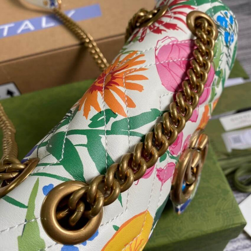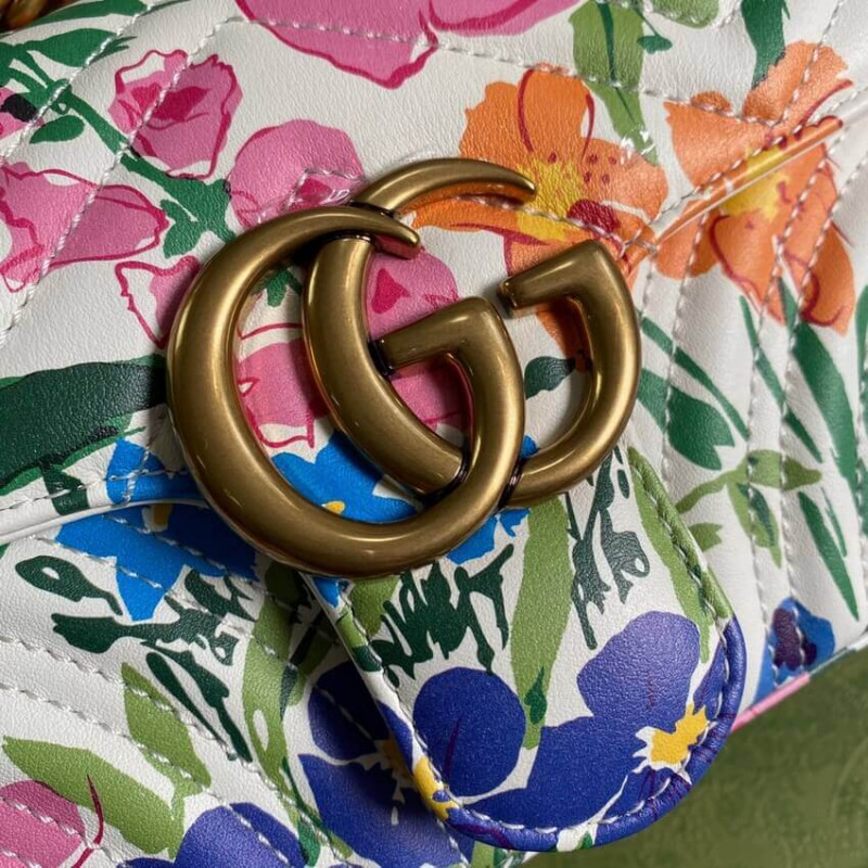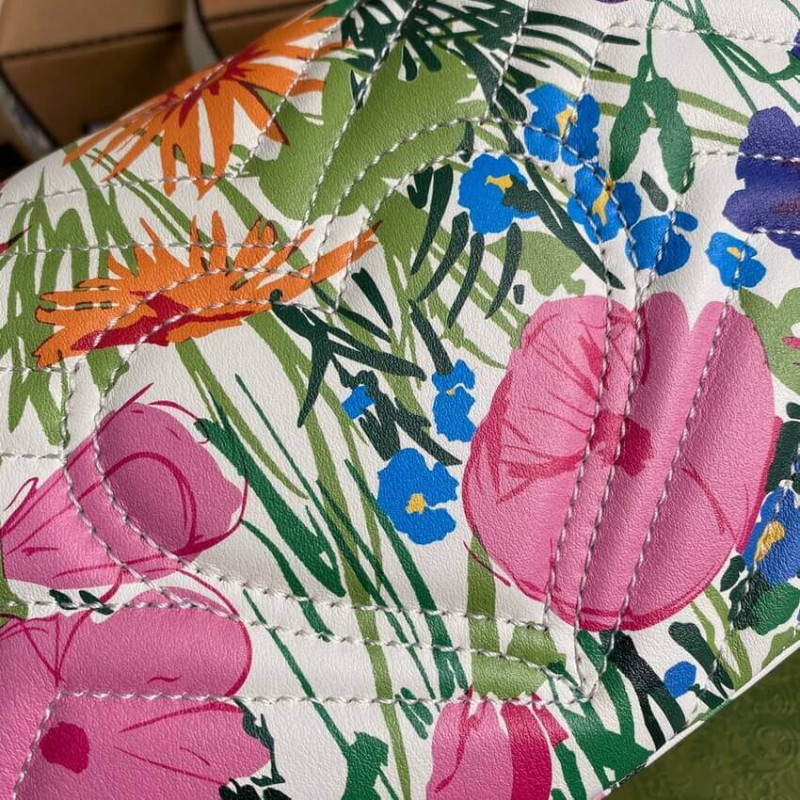 A bright botanical print by Ken Scott animates this mini shoulder bag. Nicknamed the ‘Fashion Gardener,’ Ken Scott was an American designer who lived in Milan in the ‘60s and ‘70s and whose colorful floral drawings were reflective of his eclectic personality. The GG Marmont mini bag is completed by its signature monogram hardware.