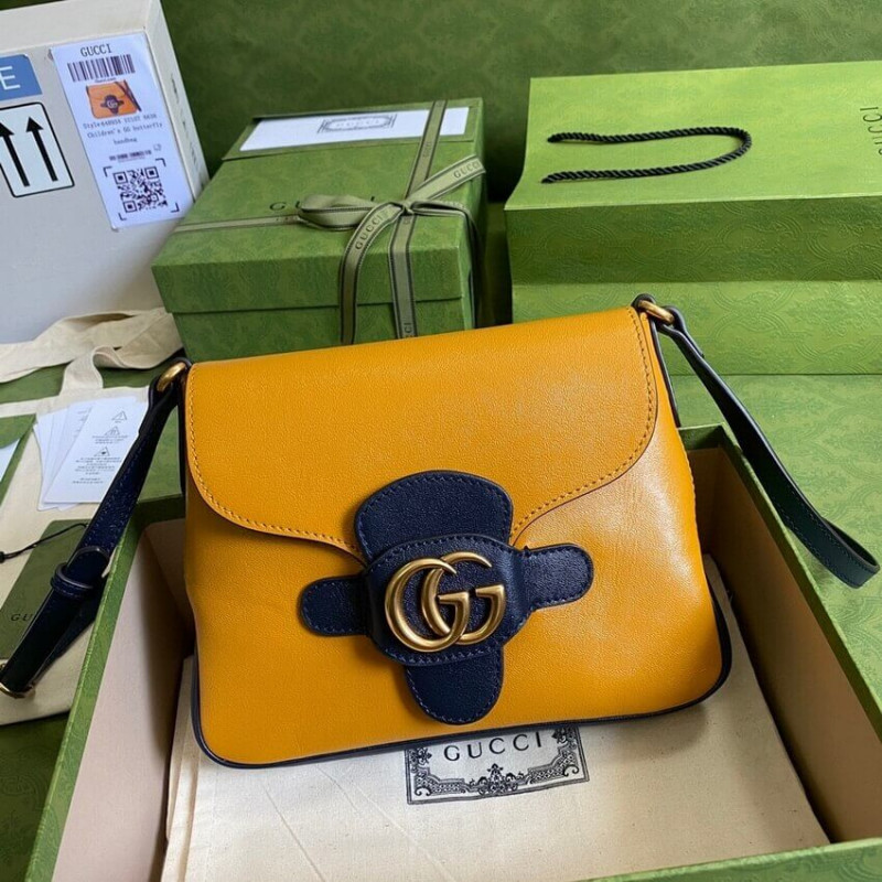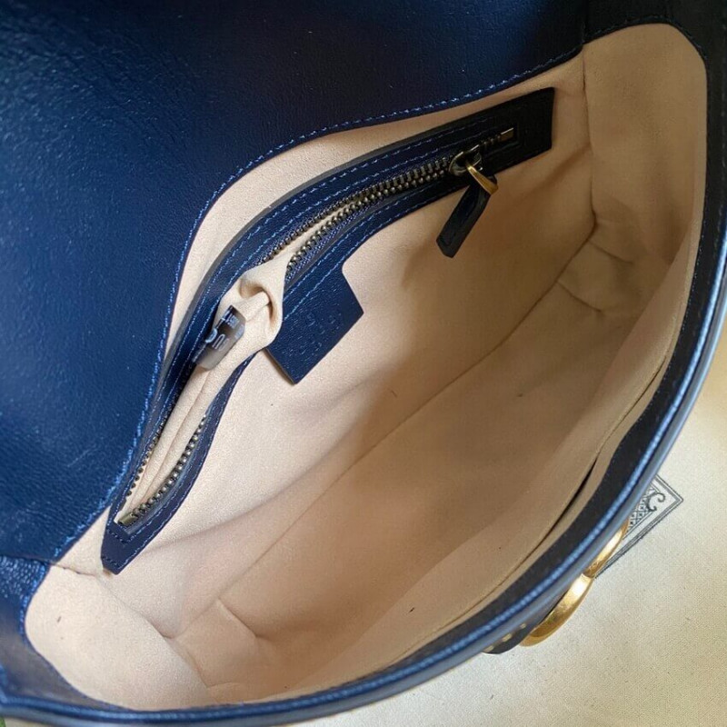 Crafted from smooth leather with contrasting black accents, this small sized shoulder bag is defined by the Double G. The classic silhouette speaks to the message that runs throughout the Epilogue collection–that fashion is timeless rather than for just one season.