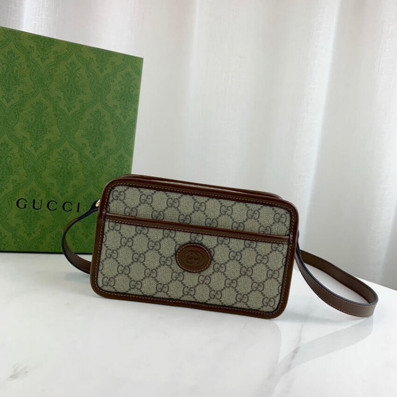 - Beige and ebony GG Supreme canvas, a material with low environmental impact, and brown leather trim