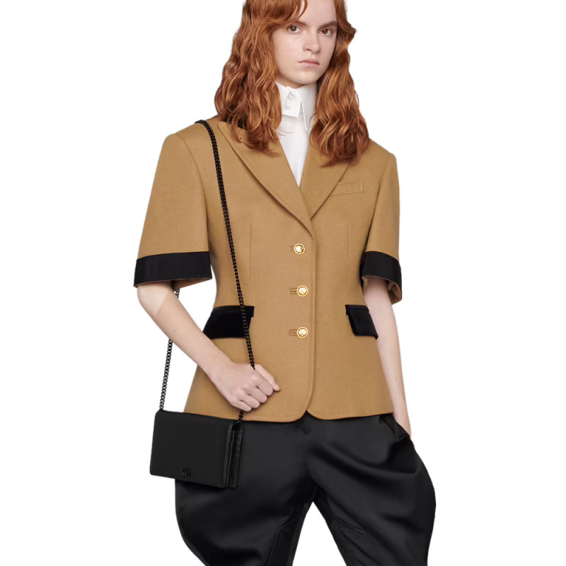 The GG Marmont chain wallet is introduced in timeless black leather for the Aria collection. First appearing as a belt buckle in the 70s, the Double G hardware is reimagined in tonal resin. The accessory monochrome shades add a contemporary feel to the emblematic design, accentuated by a detachable shoulder strap.