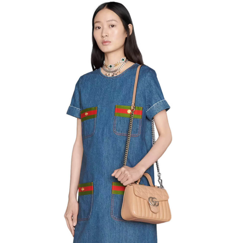Gucci Aria explores the House s archives, telling Gucci s story though a mix of archival and contemporary elements. The GG Marmont was introduced in one of the Creative Director s first fashion shows and each season its design evolves through the lens of the latest collection. Here, the mini bag is presented in soft white matelassé leather with antique silver-toned hardware.