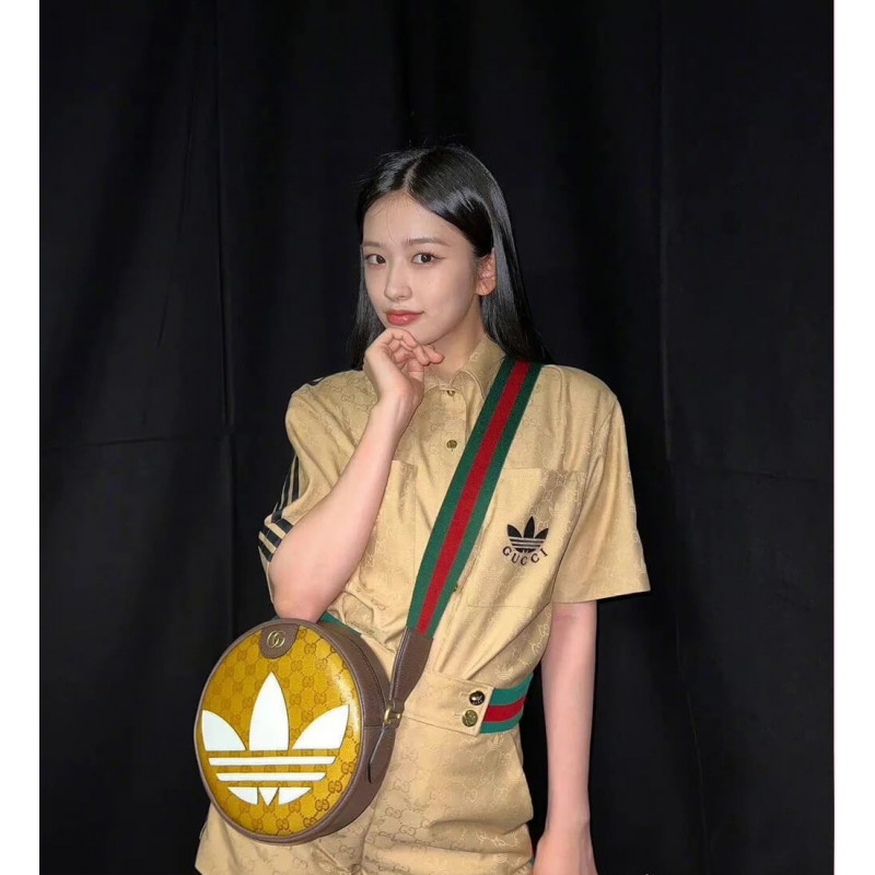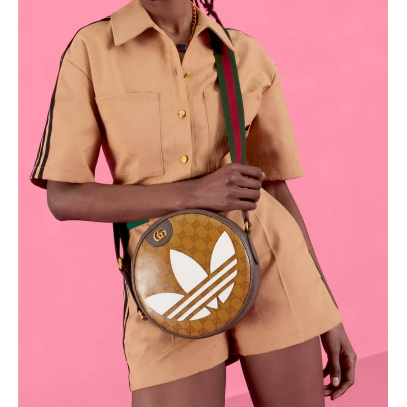 Part of the adidas x Gucci collection, this Ophidia small shoulder bag features the Trefoil patch. Emblematic House’s motifs mix with those of the historic sportswear brand adidas. The collection sees both heritages encoded in a trio of lines, where adidas and Gucci combine archival emblems. Creative Director, Alessandro Michele pulls inspiration from his memories of the ‘80s and ‘90s for a collection that is both nostalgia-driven and contemporary.