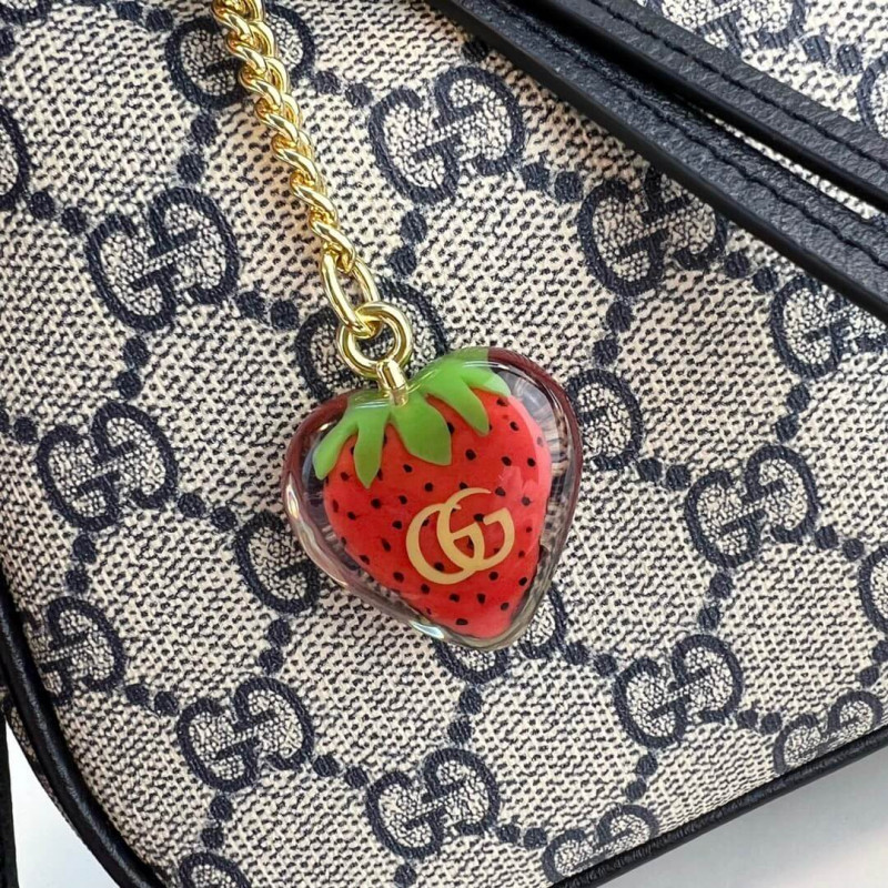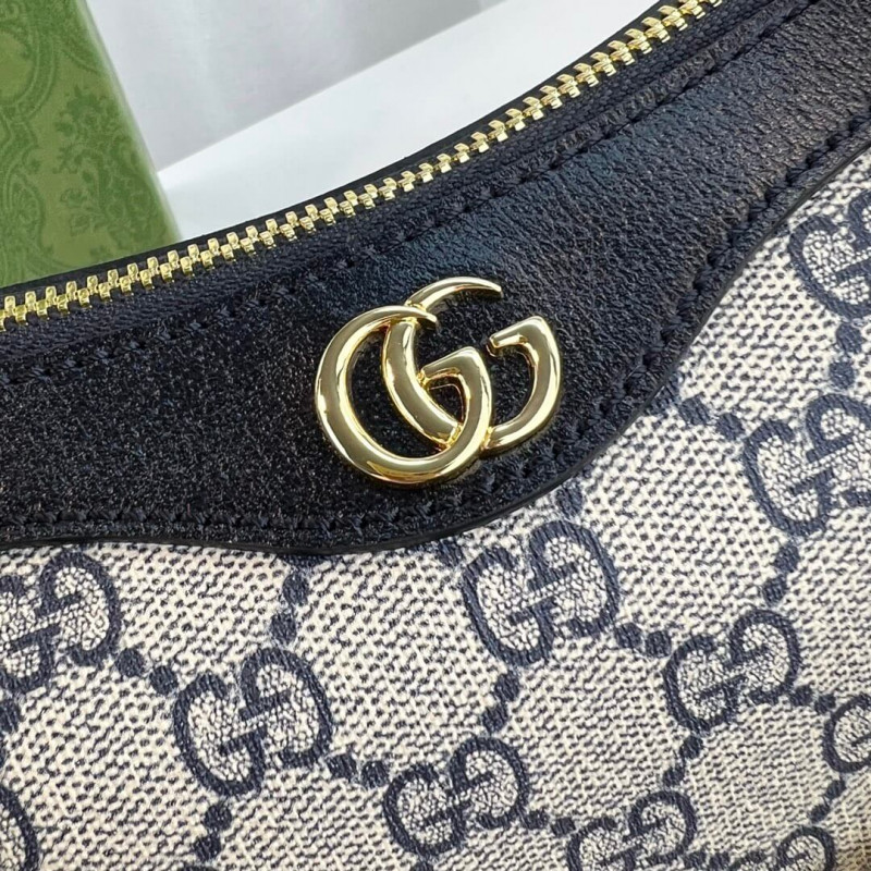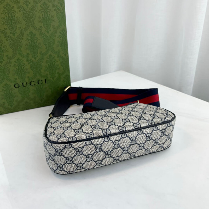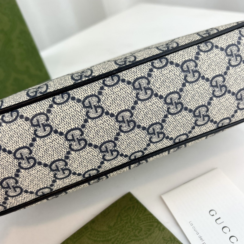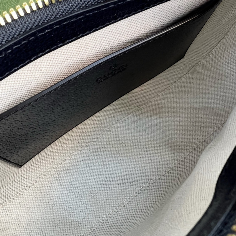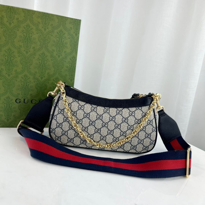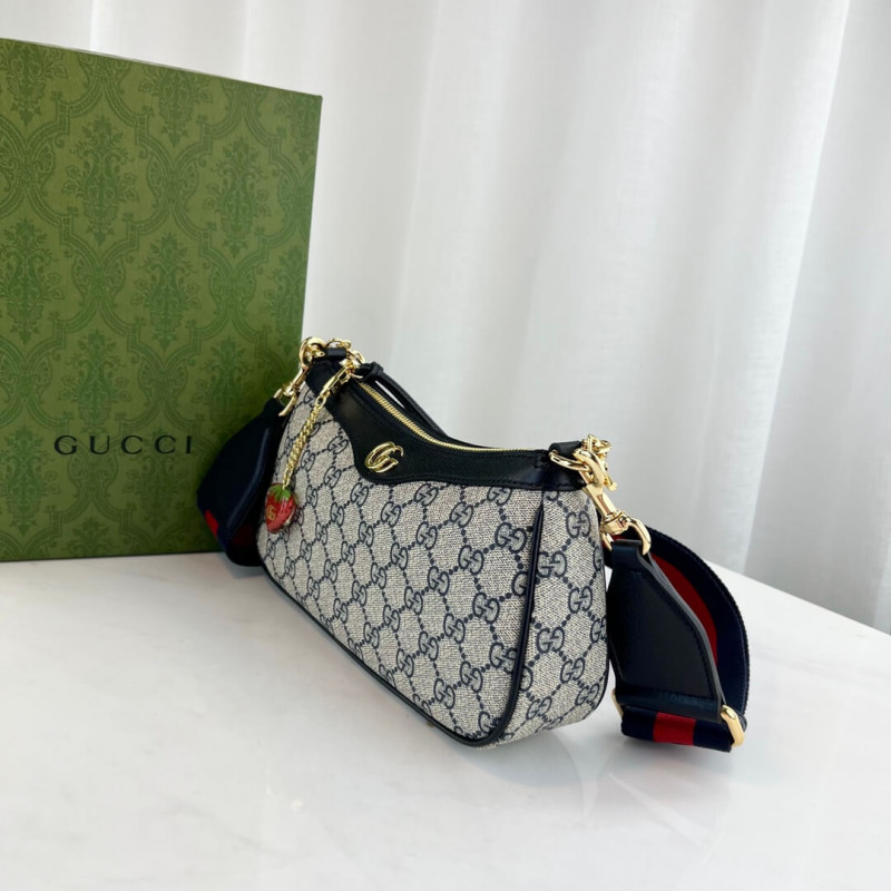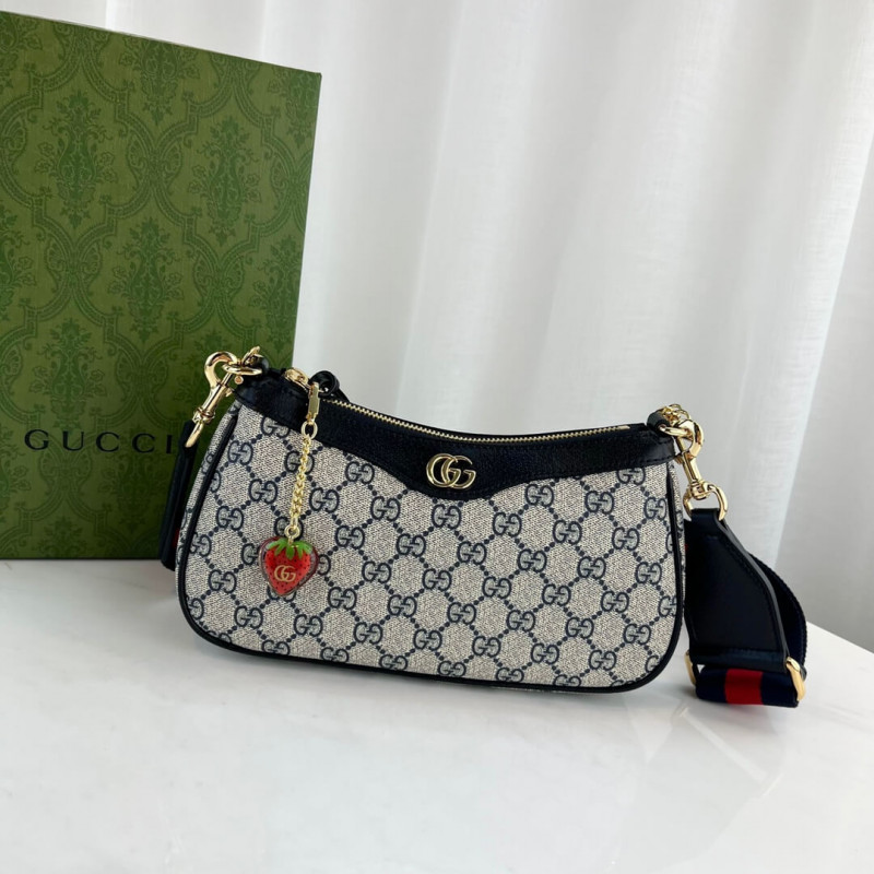 The GG logo is an evolution of the original Gucci rhombi design from the 1930s, and from then it s been an established symbol of Gucci s heritage. This unmistakable pattern decorates this small handbag as part of the latest Ophidia line. A Double G hardware completes the style