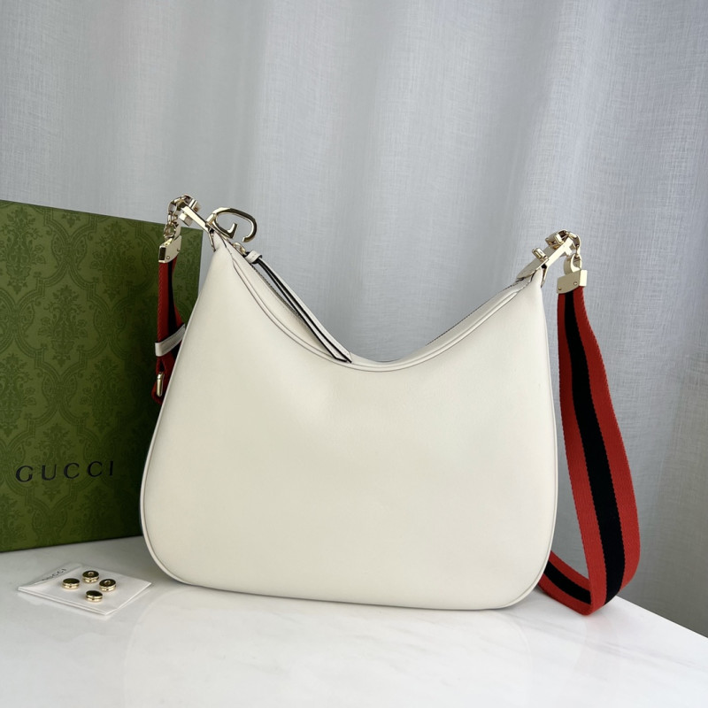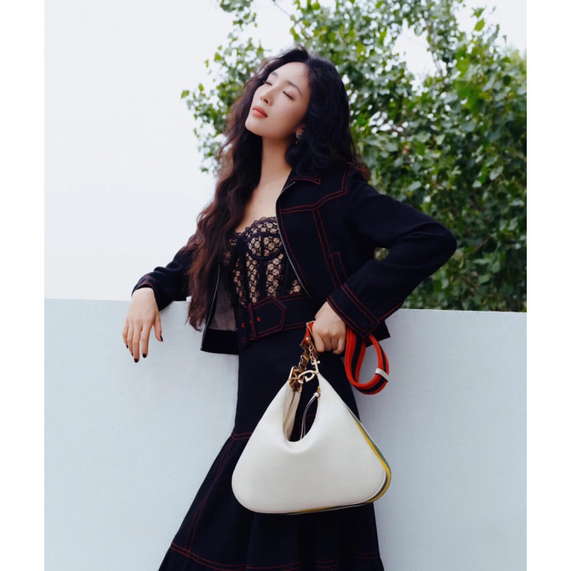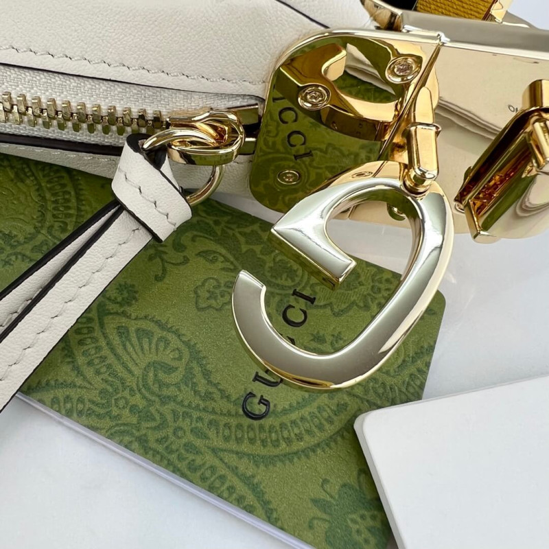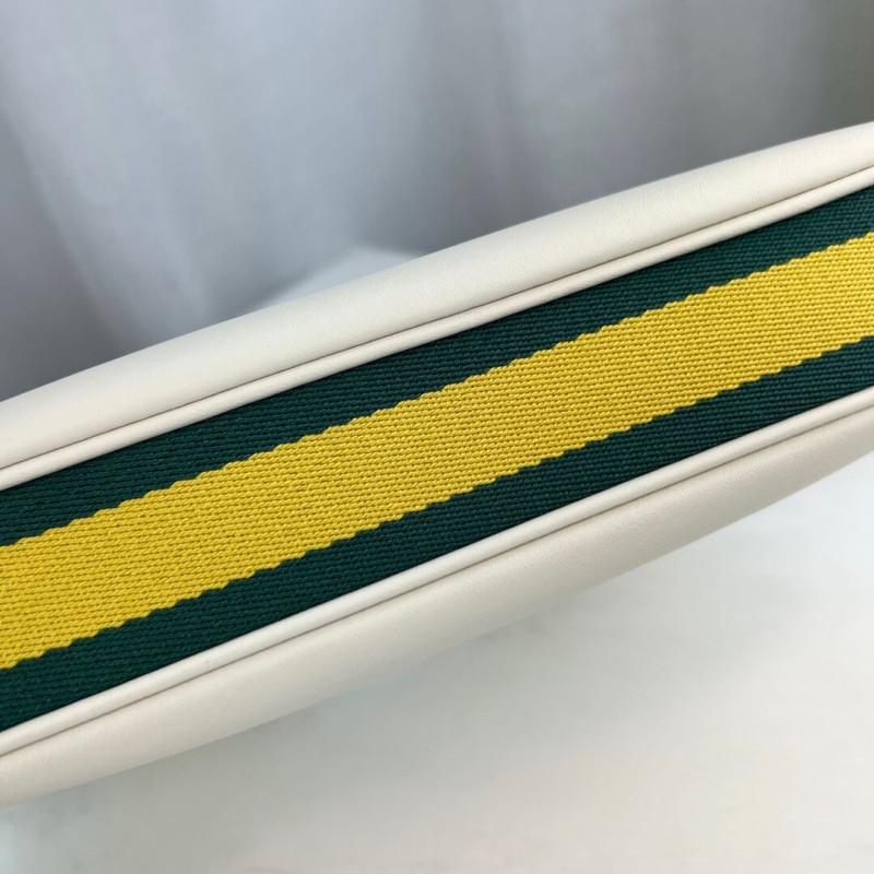 An ode to the timeless Hollywood glamour that shaped Gucci Love Parade, classic elements from the House s archives are reintroduced. Distinguished by its crescent moon shape, the accessory is further defined by a G shaped hook closure. Paired with soft materials, the heritage hardware creates a refined design with vintage appeal. This medium version is crafted in black leather with orange and black Web trim.