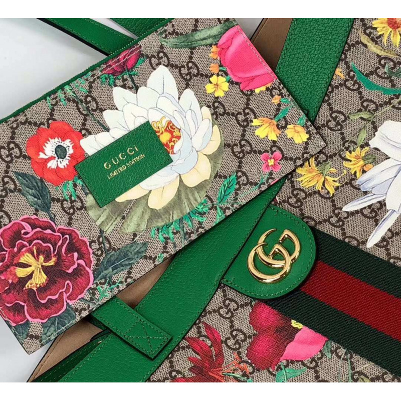 A special collection combines two of the House s most distinctive designs into an unexpected and contemporary fabric, animating classic silhouettes like the tote bag. The historic Flora motif, first presented by Vittorio Accornero more than 50 years ago, is layered over the House monogram and trimmed with red leather for a modern take on the two archival patterns.
