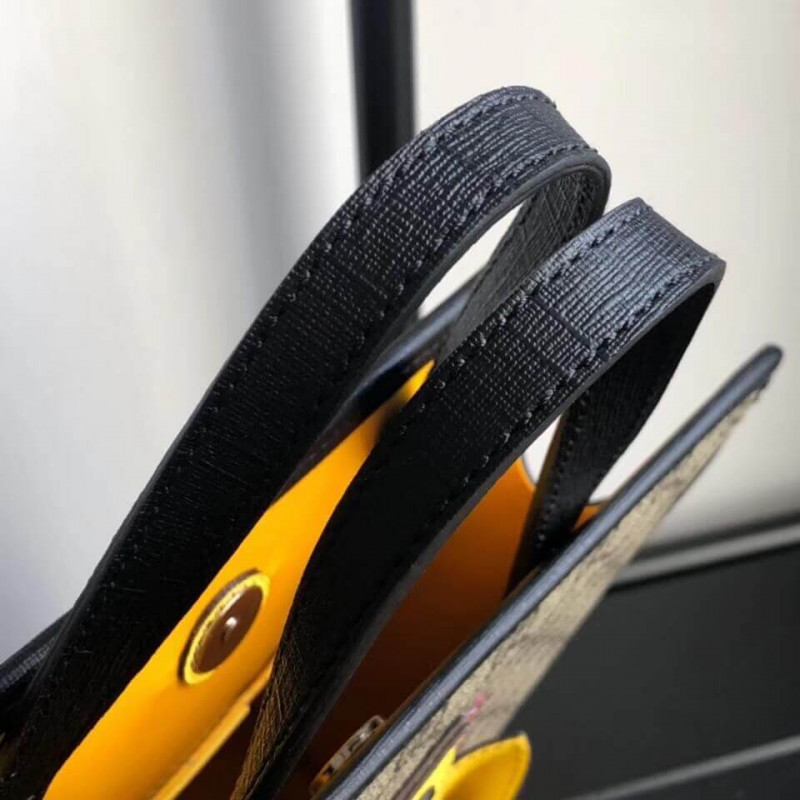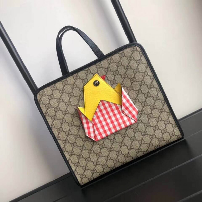 A farmyard animal that recalls children s picture books, the chick is presented on this kid s tote as an intricate three-dimensional appliqué. The House s monogram canvas is finished with contrast black trims.