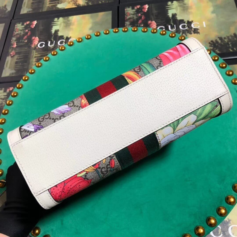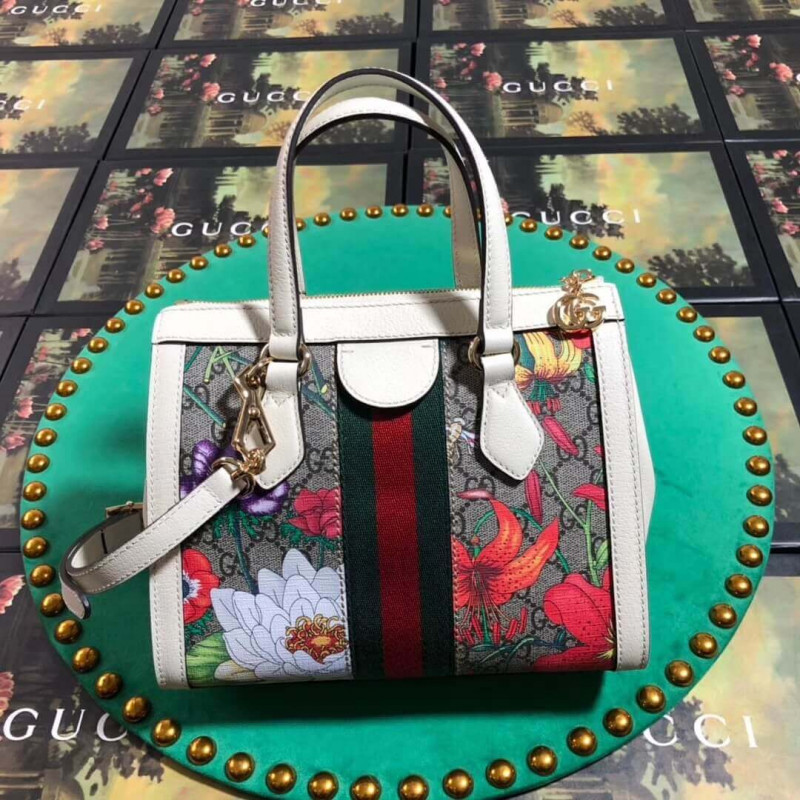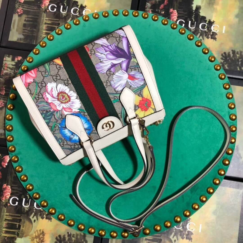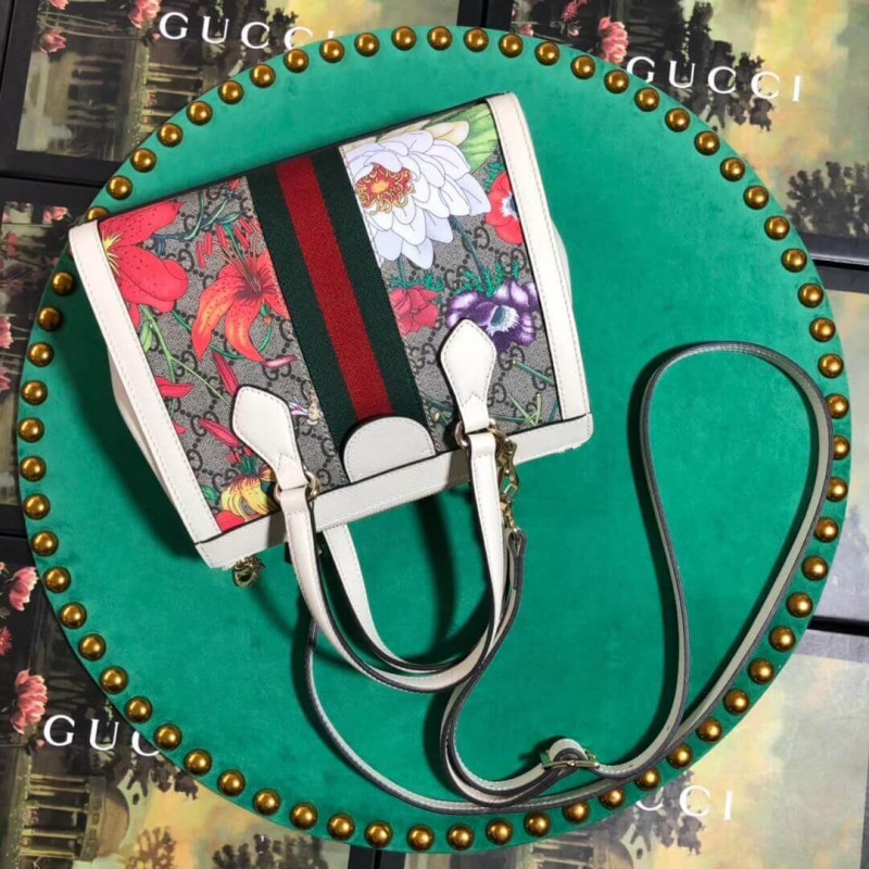A special collection combines two of the House s most distinctive designs into an unexpected and contemporary fabric, animating classic silhouettes like the Ophidia top handle tote. The historic Flora motif, first presented by Vittorio Accornero more than 50 years ago, is layered over the House monogram and trimmed with red leather for a modern take on the two archival patterns.