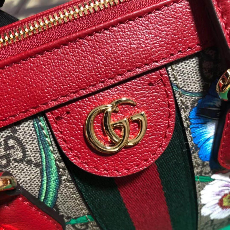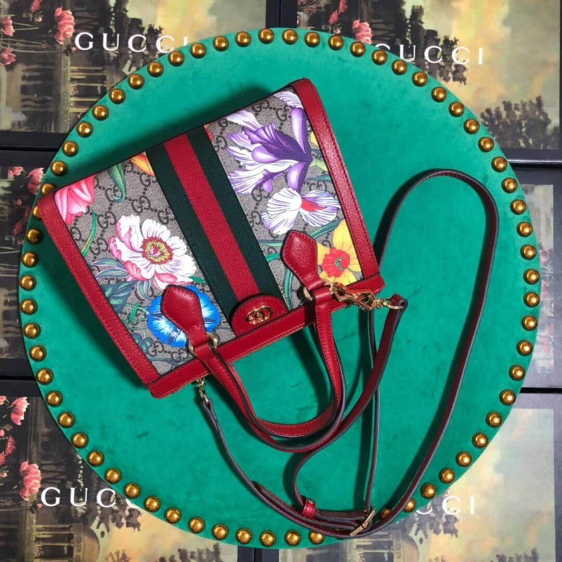 A special collection combines two of the House s most distinctive designs into an unexpected and contemporary fabric, animating classic silhouettes like the Ophidia top handle tote. The historic Flora motif, first presented by Vittorio Accornero more than 50 years ago, is layered over the House monogram and trimmed with red leather for a modern take on the two archival patterns.