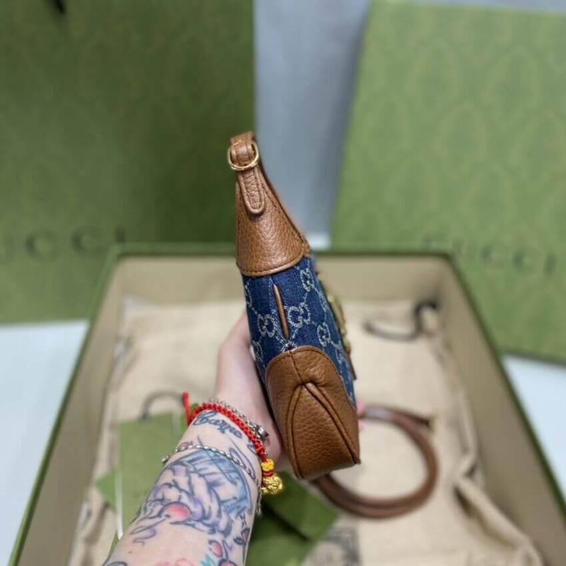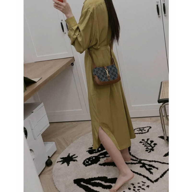 Brought back to the forefront, the recognizable shape is presented in denim with a GG motif and enhanced with an additional, detachable shoulder strap. Attached to the bag with a buckle closure, the second strap adds a contemporary feel to the archival style, providing new ways to wear—from top handle, shoulder to cross body. The Jackie 1961: available exclusively in Gucci stores and on Gucci.com