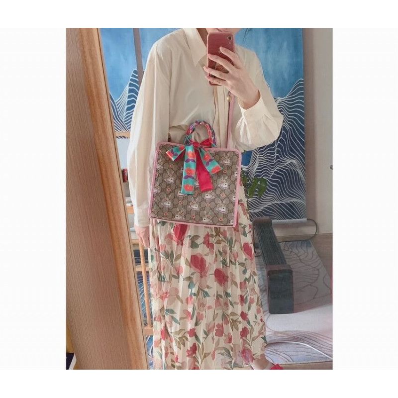 - Beige and ebony GG Supreme canvas with rabbit print by Japanese artist Yuko Higuchi