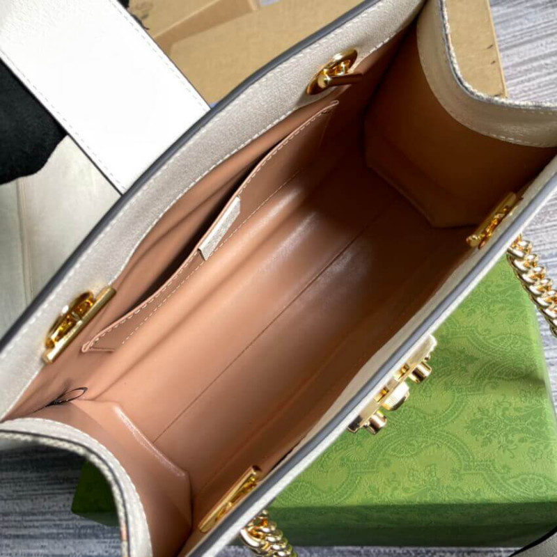 Inspired by an archival piece, the Padlock is presented with contemporary details—linking different chapters of House history together. Here, the small bag is reimagined as a tote bag while still being defined by the line s emblematic lock and key closure. A metallic cherry and strawberry print completes the design with a playful twist.