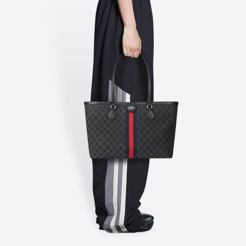 Hacker Medium Tote Bag in black and dark grey canvas jacquard with aged silver hardware is from The Hacker Project.