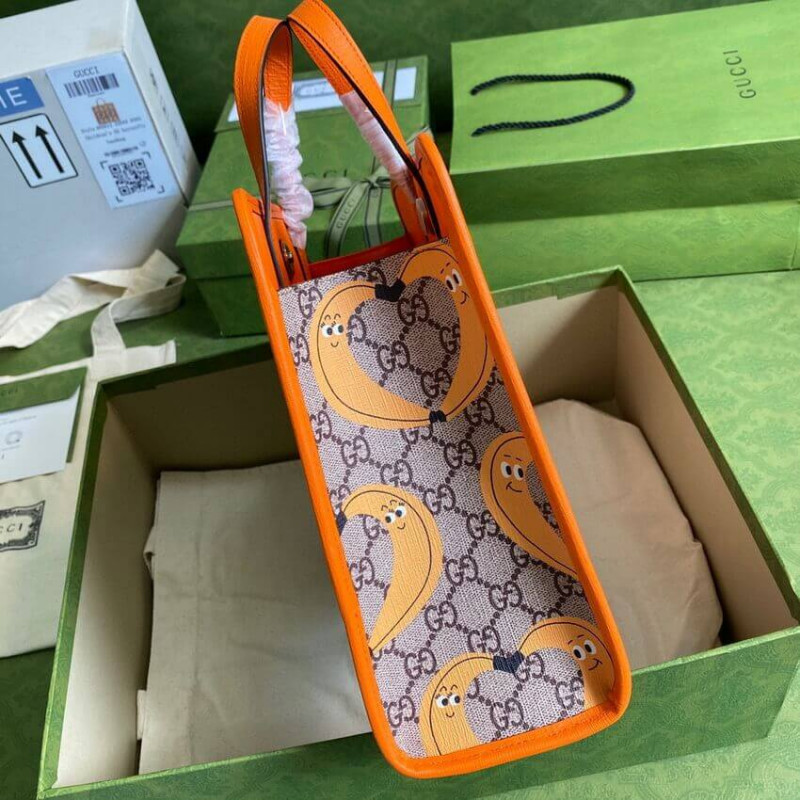 For Ouverture, a medley of fruit carry on a story of playfulness that has come to define Gucci designs. Part of a special collaboration with Nina Dzyvulska, this children s tote bag is defined by a playful banana print.