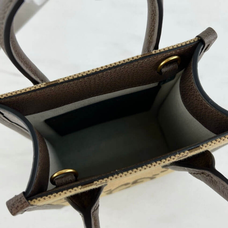 First seen as part of Gucci Aria, the jumbo version of the emblematic GG motif returns atop signature luggage pieces, imbuing each design with a pronounced logo feel. This mini tote bag is accentuated by the signature green and red House Web, a contemporary take on a Gucci archival belt buckle from the 70s.