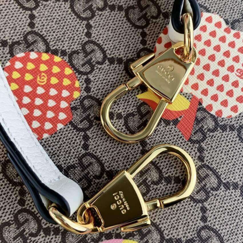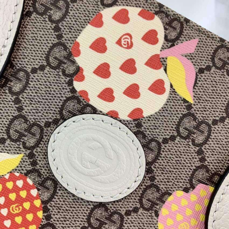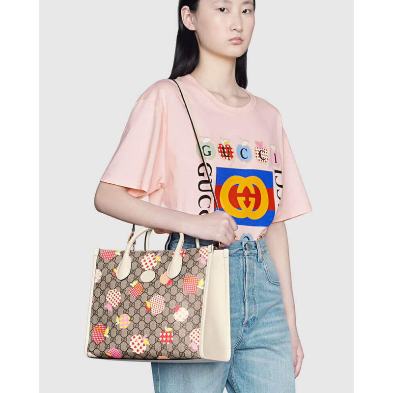 An emblem of the Gucci s playful spirit, fruits and vegetables have become contemporary House codes that animate the latest collections. Speaking to this theme, this small tote is defined by a whimsical apple motif.