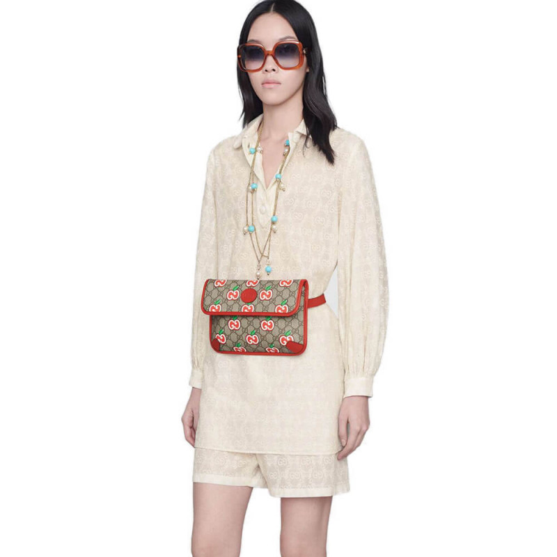 In celebration of Chinese Valentine’s Day, a special collection of styles features cartoon-style apples playfully set against the House’s monogram. The belt bag is completed with an adjustable leather strap.
