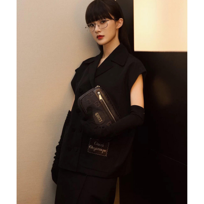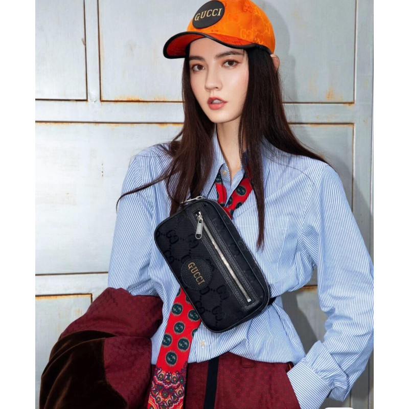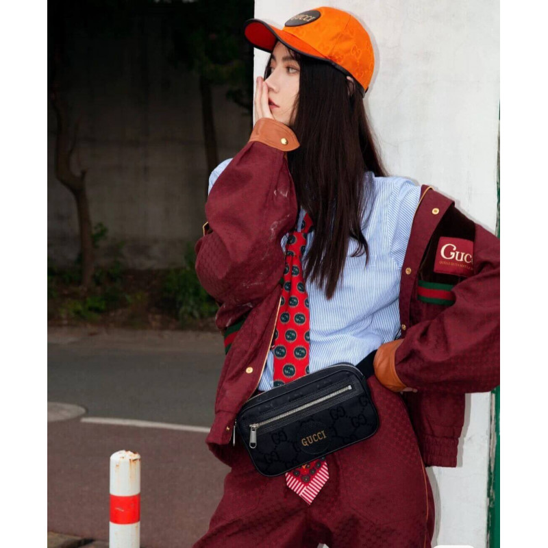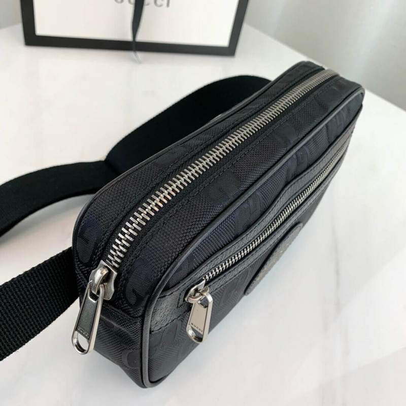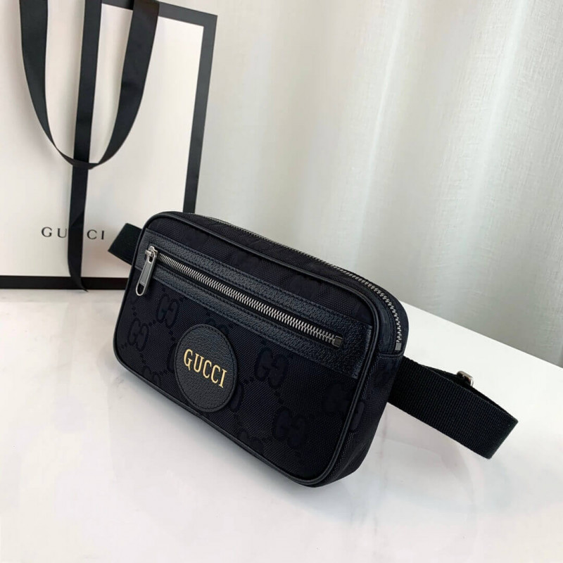 A line of accessories and ready-to-wear is presented for Pre-Fall 2020 made from recycled materials and trims, supporting the House s commitment to sustainability. Gucci Off The Grid is the first collection from Gucci Circular Lines—a concept created to support the House s vision for circular production. Designed for those mindful of their environmental impact, Gucci Off The Grid uses recycled, organic, bio-based and sustainably sourced materials. Regenerated nylon, crafted using recycled sewing thread and trims displays the GG pattern against an opaque background in black. The belt bag is completed with an adjustable buckle closure and front zipper pocket.