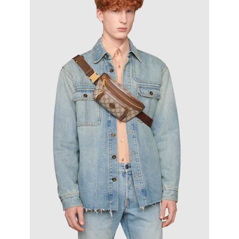Materials, colors and House codes come together to infuse styles with a vintage feel. Here, this belt bag is crafted from beige and ebony GG Supreme canvas with a brown leather trim. The style is completed by one of Gucci s most historic codes—the Interlocking G.