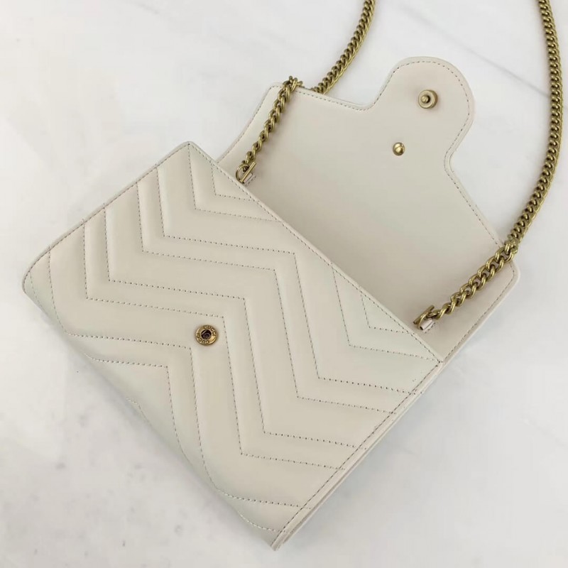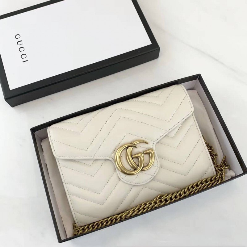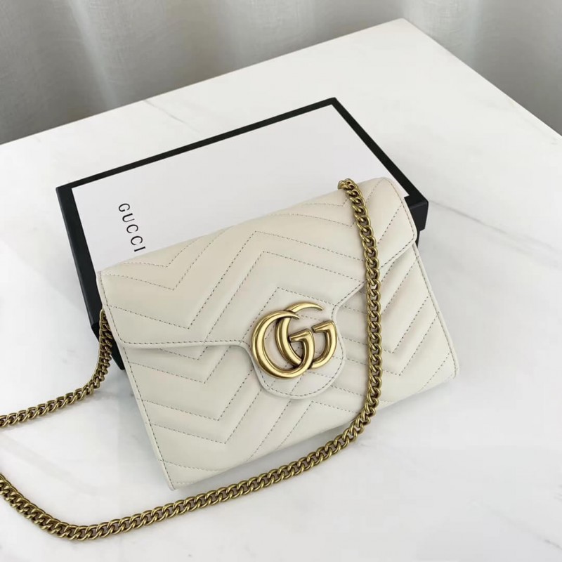 The GG Marmont chain mini bag has a softly structured shape and a flap closure with Double G hardware. The hardware is inspired by an archival design from the 70s. Made in matelassé chevron leather.