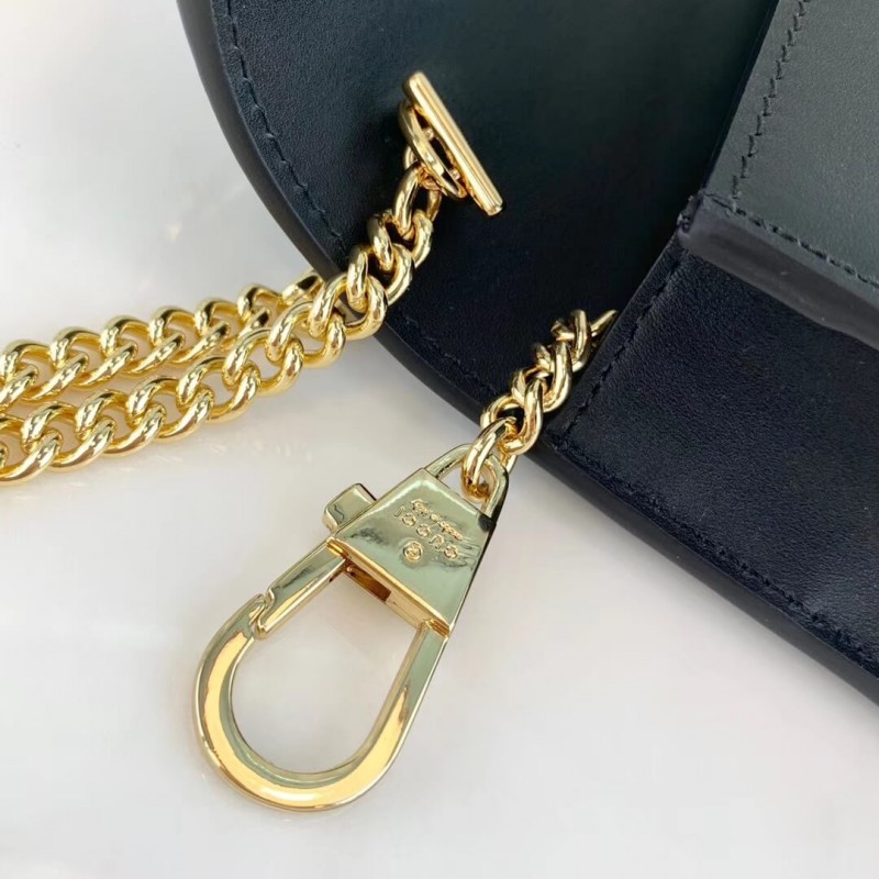 he Sylvie mini chain bag features the nylon Web embedded under the leather and decorated with a gold chain and buckle. The metal buckle closure was taken from the House’s archives. Made in our smooth, classic leather.