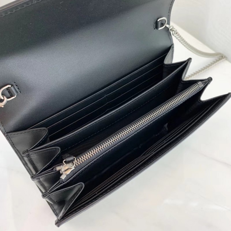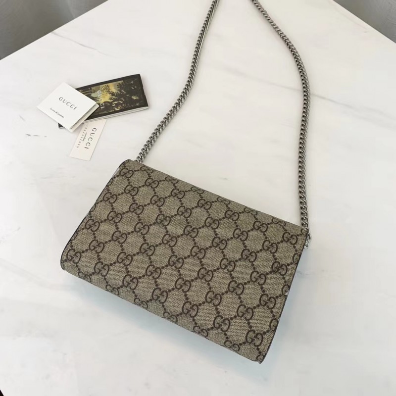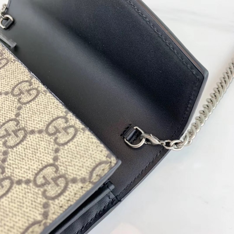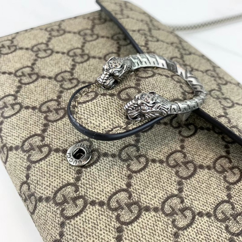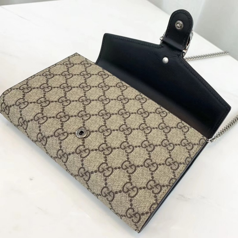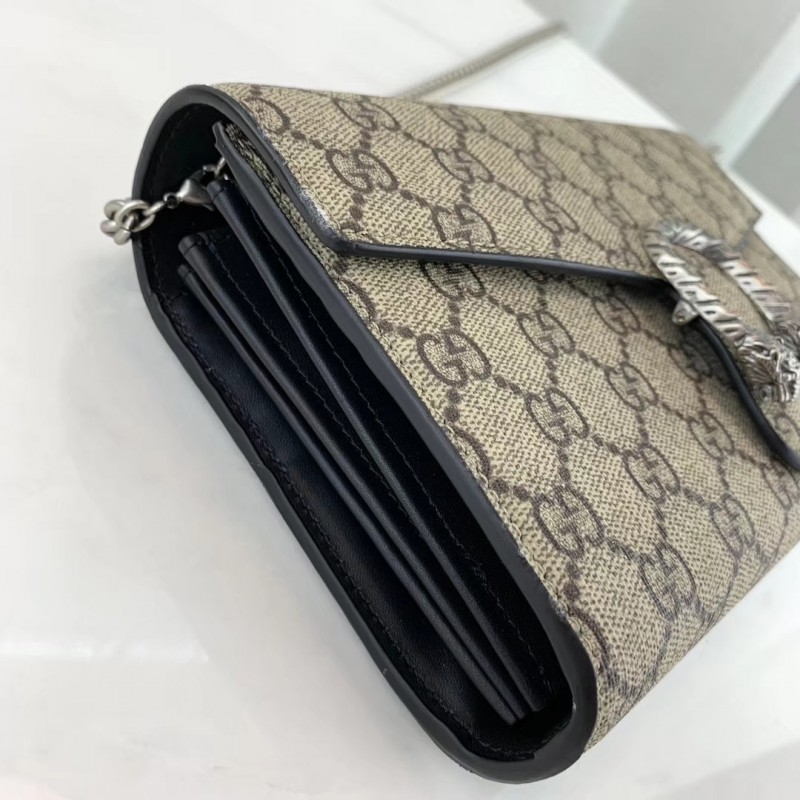 A structured GG Supreme canvas chain wallet with our textured tiger head spur closure.