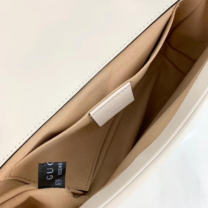 The mini GG Marmont chain shoulder bag has a softly structured shape and an oversized flap closure with Double G hardware. The sliding chain strap can be worn multiple ways, changing between a shoulder and a top handle bag. Made in matelassé chevron leather with a heart on the back.