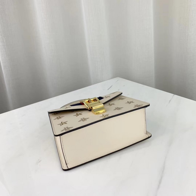 A petite version of the signature Gucci shape, the Sylvie mini bag playfully mixes House codes with interchangeable straps for different ways to wear it. Made in bees and stars printed leather, the structured silhouette is designed with a fixed leather top handle. It also comes with two shoulder straps—one in the Sylvie Web colours and one in matching leather—that can also be adjusted to be worn cross body.