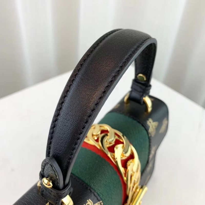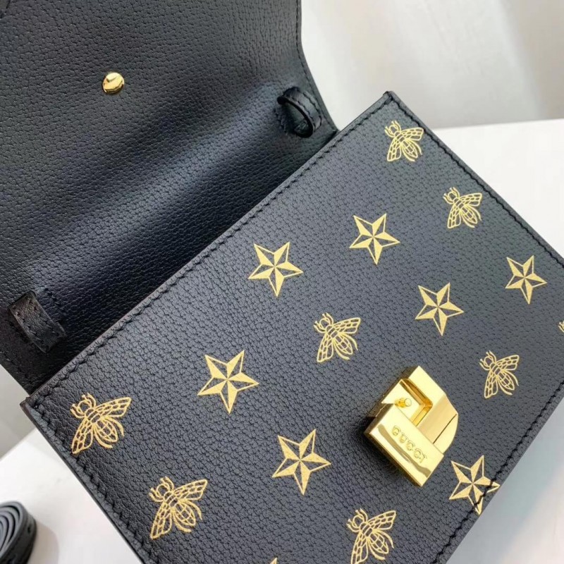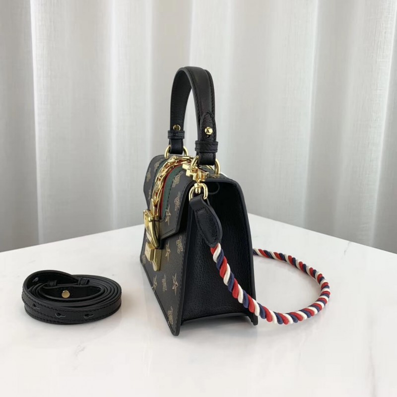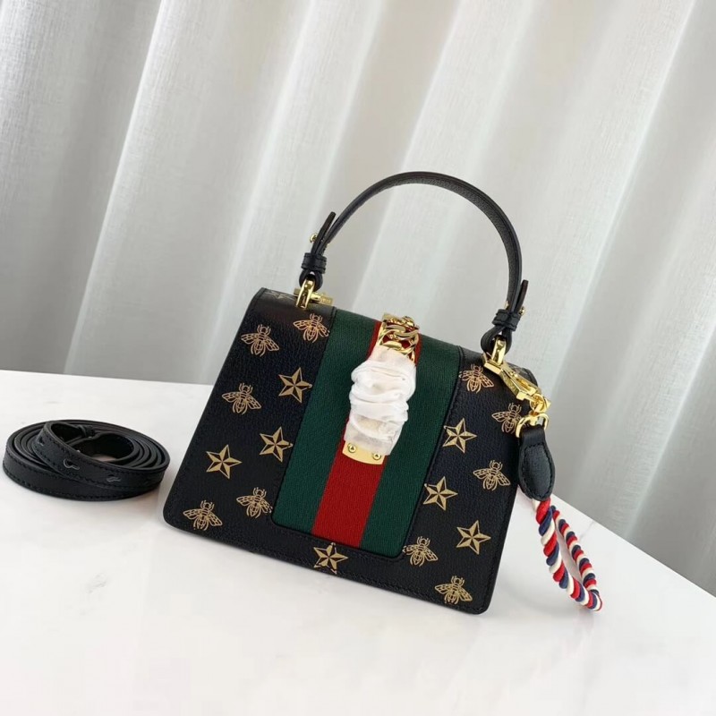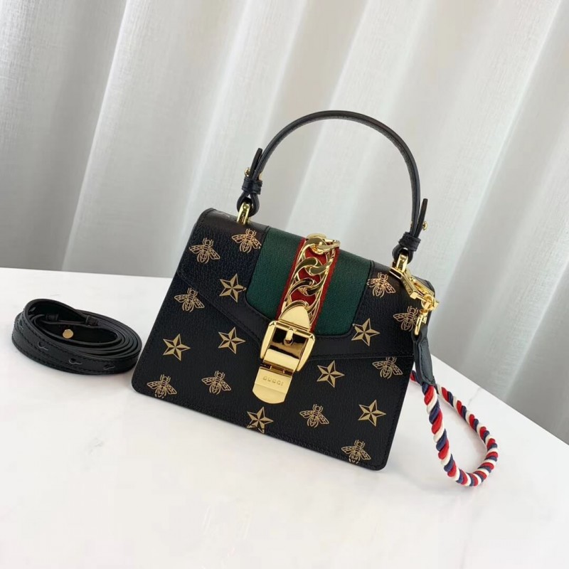 A petite version of the signature Gucci shape, the Sylvie mini bag playfully mixes House codes with interchangeable straps for different ways to wear it. Made in bees and stars printed leather, the structured silhouette is designed with a fixed leather top handle. It also comes with two shoulder straps—one in the Sylvie Web colours and one in matching leather—that can also be adjusted to be worn cross body.