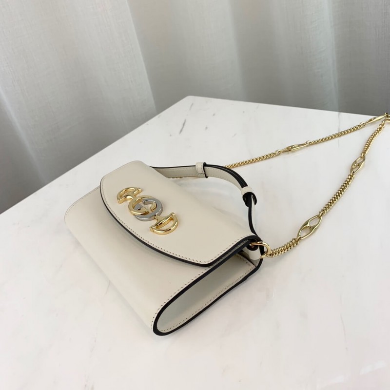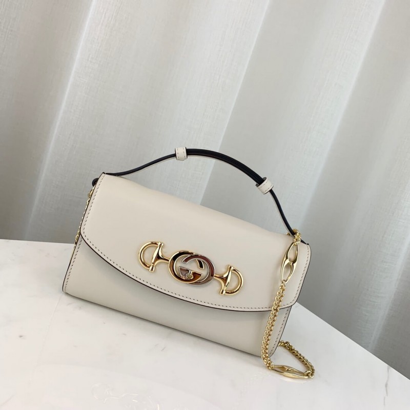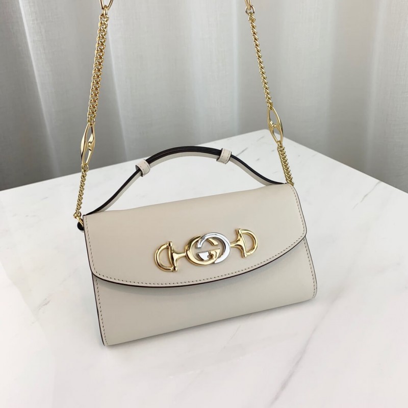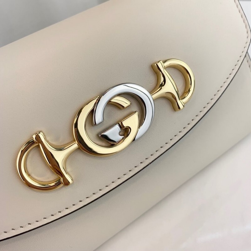 Introduced in the evocative setting of the Théatre Le Palace in Paris, the Gucci Zumi line takes its name from actress and experimental musician Zumi Rosow, who walked the Spring Summer 2019 runway carrying the bag. Gucci continues to bring House icons to the forefront in unexpected ways, merging two of its most distinctive codes into one symbol: the Interlocking G Horsebit. The hardware is presented in a modern mix of silver and gold tones on a smooth leather mini shoulder bag. The bag can be carried cross body, used as a clutch when the chain is removed and worn as a top handle when the leather handle is extended.