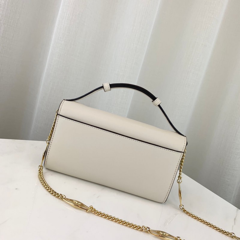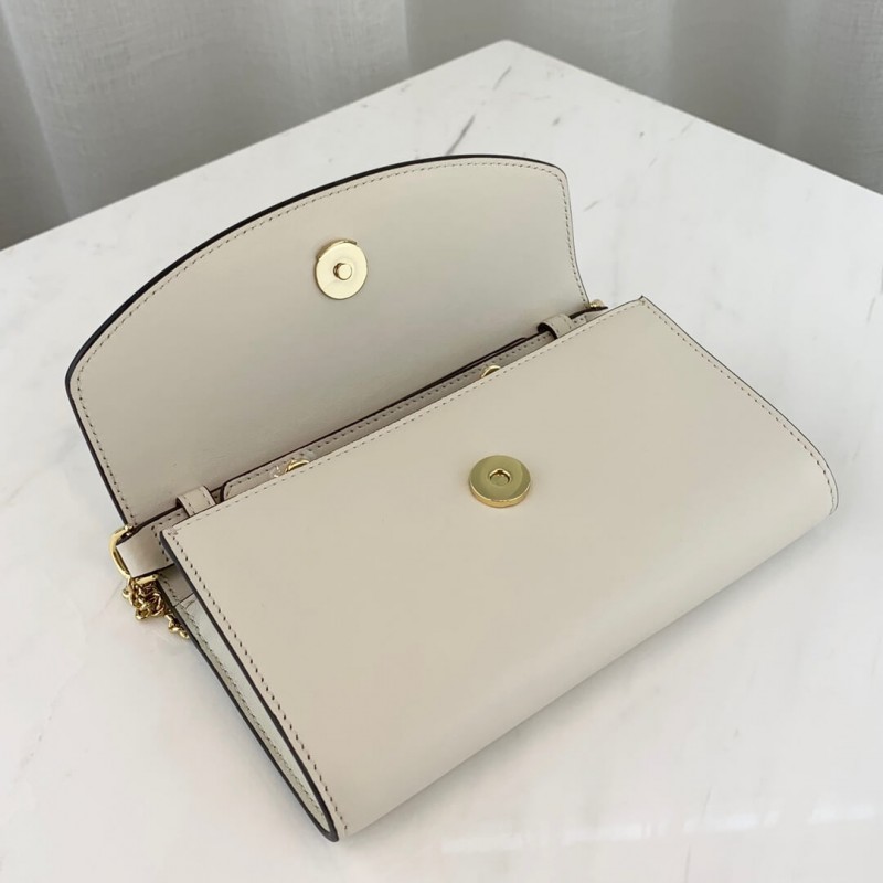 - Detachable Marina chain shoulder strap with 20" drop secures with a button closure at the interior flap