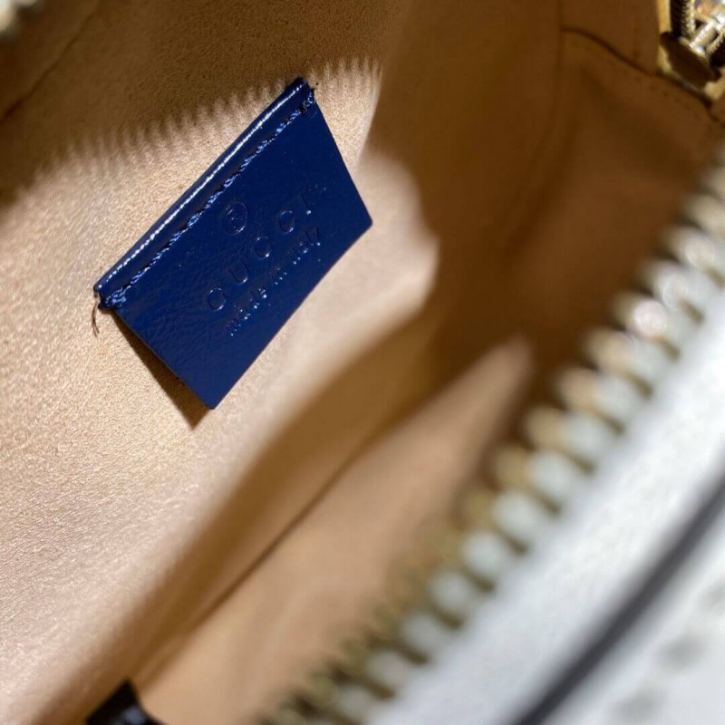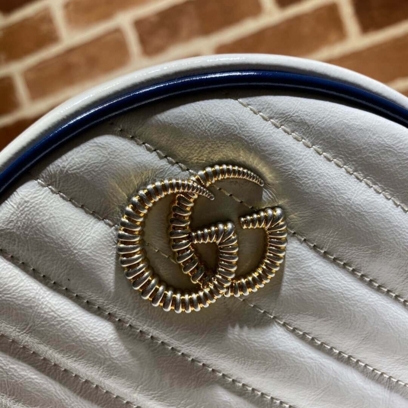 The mini bag s playful rounded design is reintroduced within the season s narrative, in beige and black striped diagonal matelassé quilted leather. The chain strap shoulder bag is defined by the distinctive Double G hardware, now in a twisted torchon design.