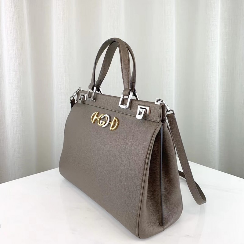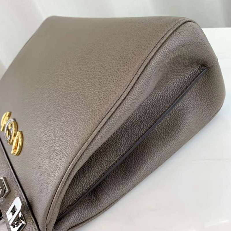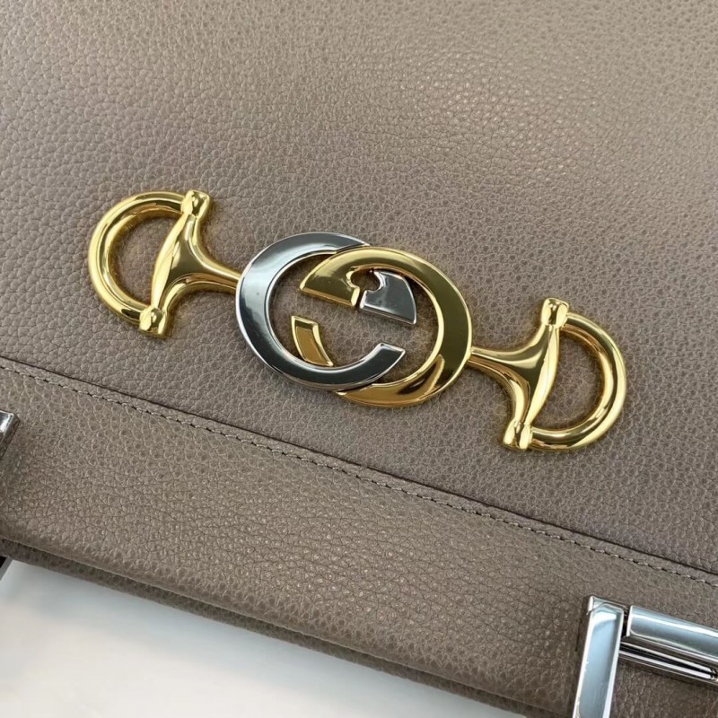 Merging two of its most distinctive codes into one symbol: the Interlocking G Horsebit – the hardware is replicated from a rare piece from the Gucci archives, chosen for its contemporary appeal and presented in a mix of silver and gold tones. A detachable strap creates multifunctionality, doubling as a shoulder bag, while the top opening frame features a hinged lock on each side for a secure closure. Introduced in the evocative setting of the Théatre Le Palace in Paris, the Gucci Zumi line takes its name from actress and experimental musician Zumi Rosow, who walked the Spring Summer 2019 runway carrying the bag.