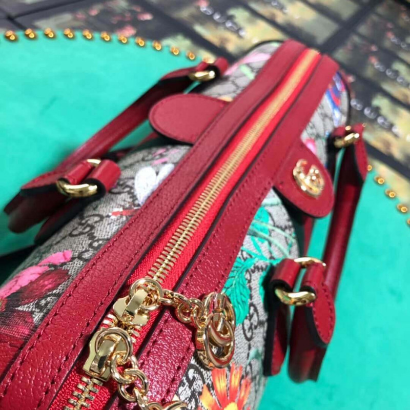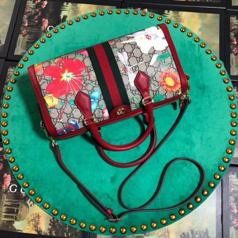 - Beige/ebony GG Supreme canvas with Flora print, a material with low- Green and red Web