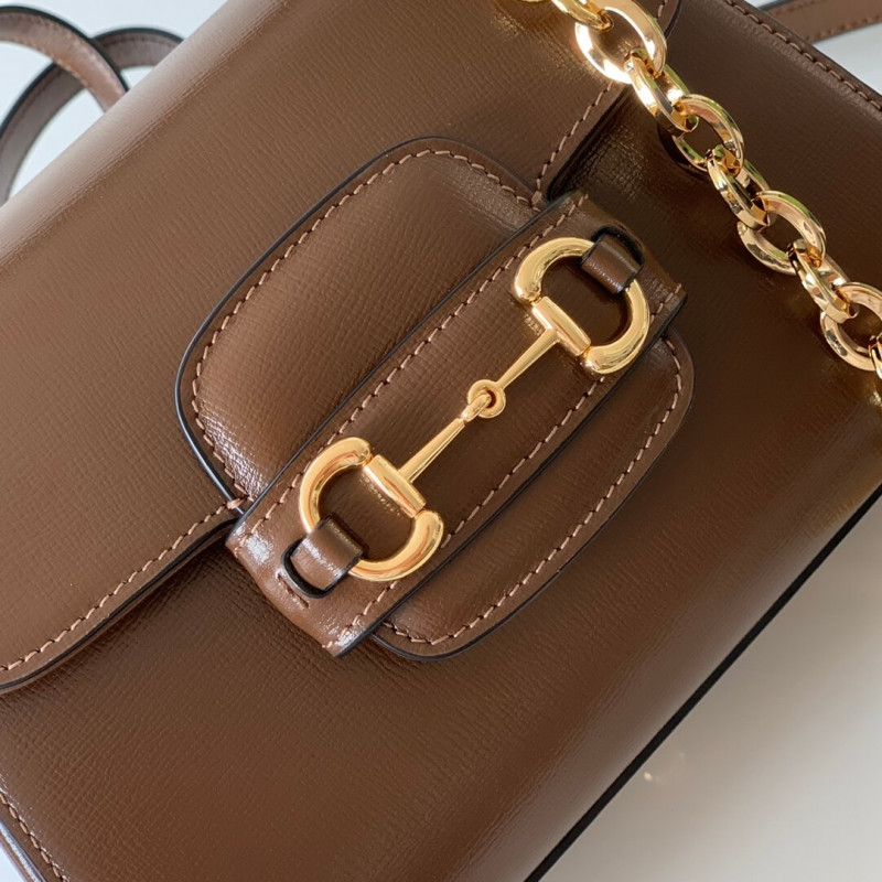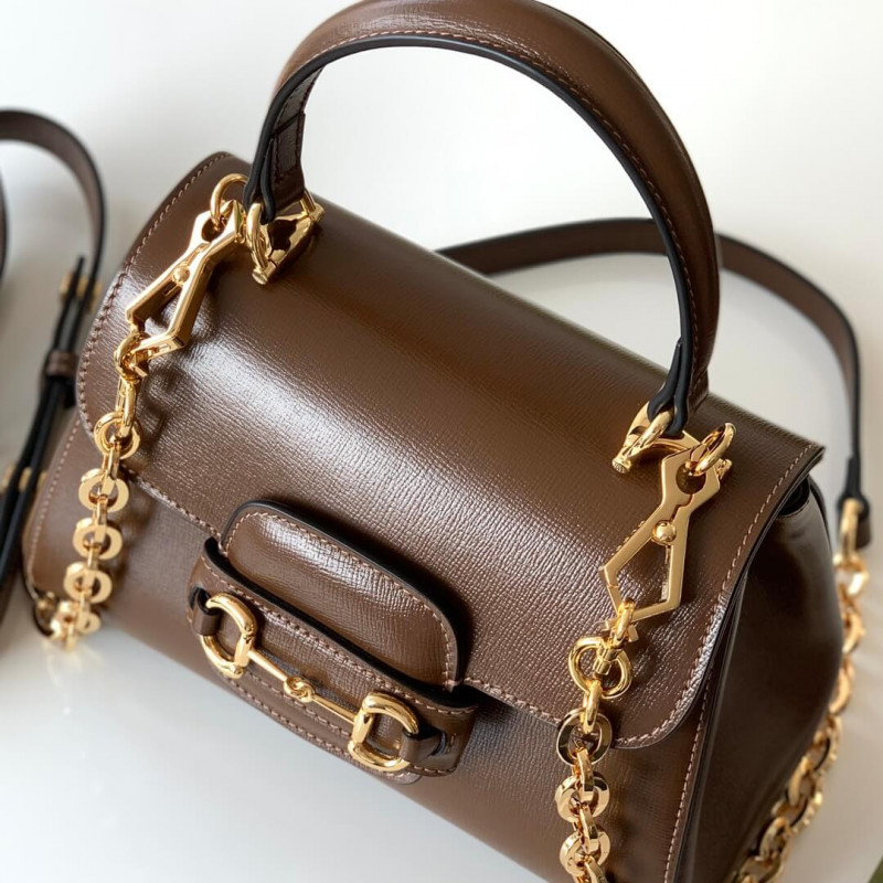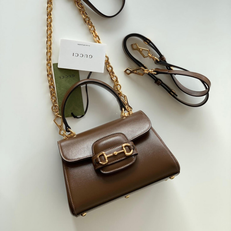 Gucci Small Top Handle Bag with Double G in Brown Leather 658450