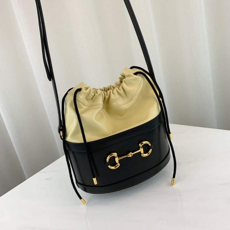 Gucci 1955 Horsebit Bucket Bag 602118 Black/Butter