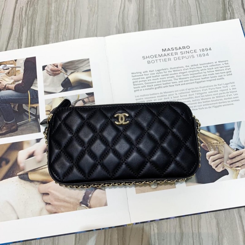 Chanel Wallet On Chain Top Handle Lambskin WOC AP2844 Black