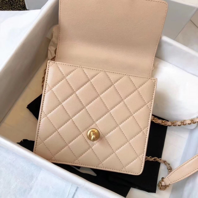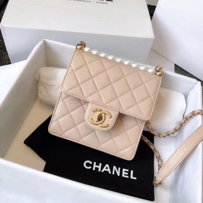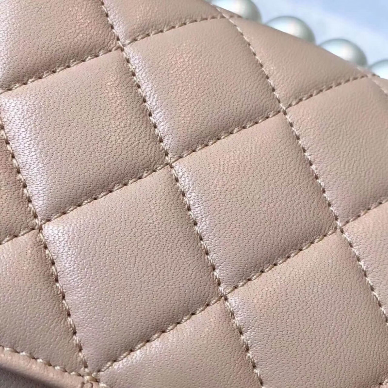 Chanel Pearl Short Handle Bag with the pearls are balanced with the overall design of the bag and this new bag has the vintage CC clasp. The bag is made from lambskin, which is super smooth and soft. It has a nice shape and it comes with a woven chain leather strap. You can carry it by hand thanks to the pearl handle or you can carry it on the houlder, thanks to the shoulder strap. So there are more carry options.