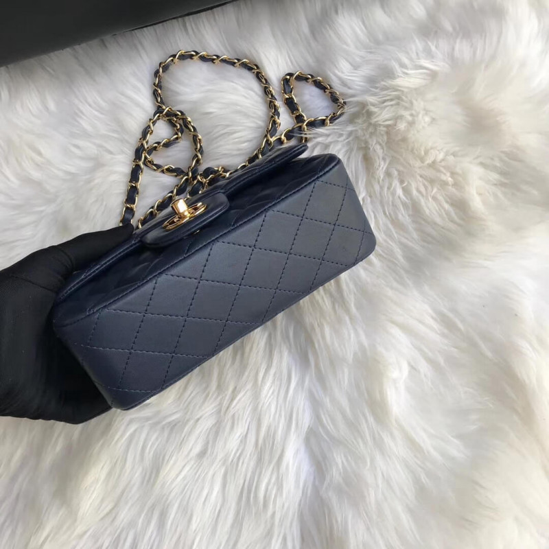 The bag features a long and versatile shoulder strap that you can carry on your shoulder or across your body. This beautiful bag also has a classic turnlock cc-closure and beautiful diamond quilted leather. The Chanel Mini Flap is an elegant piece to add to any collection. Don´t miss out!