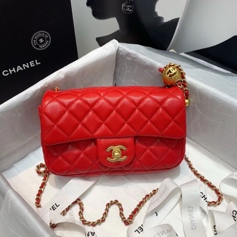 - New Chanel Lambskin Flap Bag with adjustable chain.