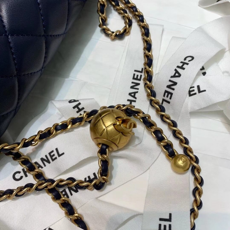 - New Chanel Lambskin Flap Bag with adjustable chain.