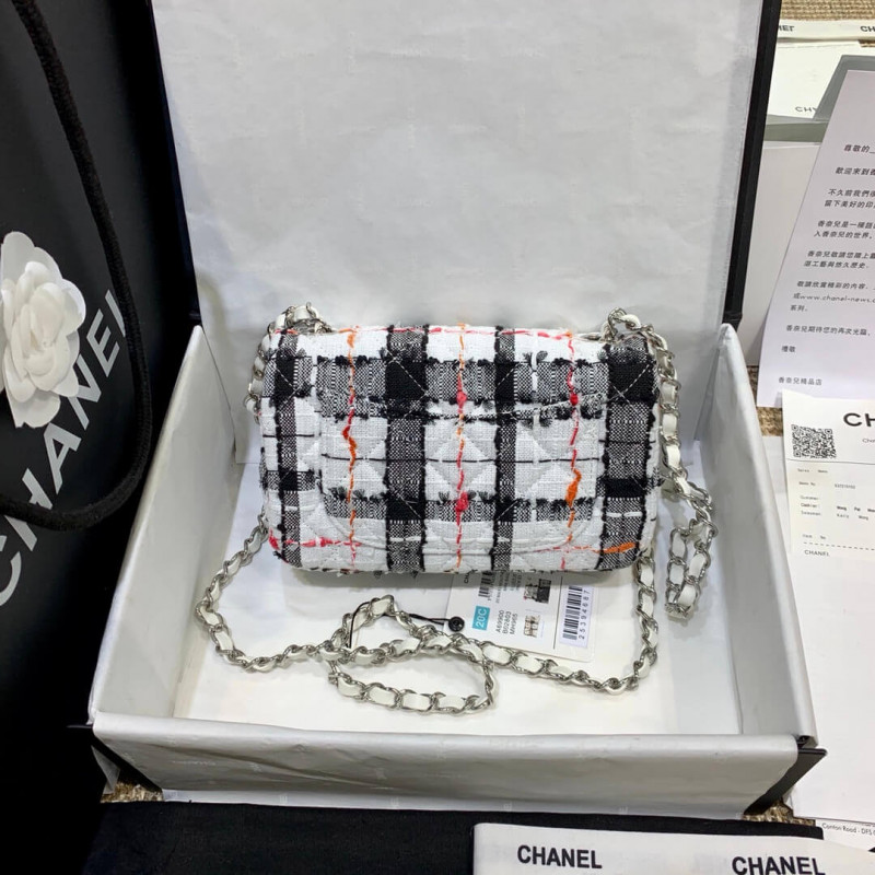 Chanel Tweed 20cm Classic Flap Bag A01116 White/Black