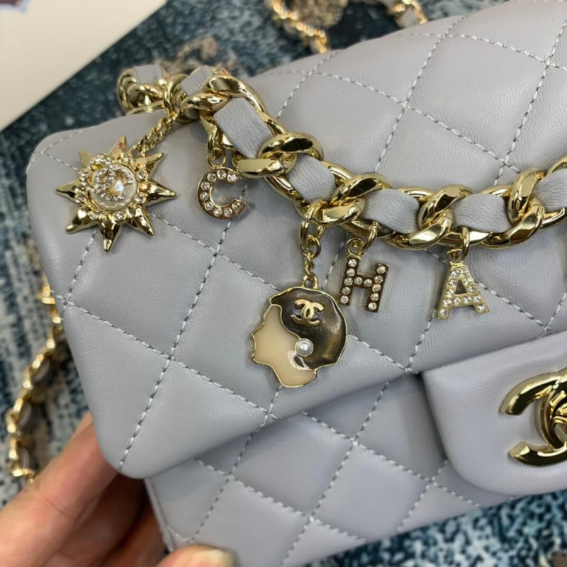The shape like the Extra Mini Classic Bag. But the biggest reason why this bag is a must-have is because of the gorgeous multi-charm. These charms are shimmering like gem-stones and they remind me of something – the charms remind me of the Chanel Valentine Bag. Are they the same charms?