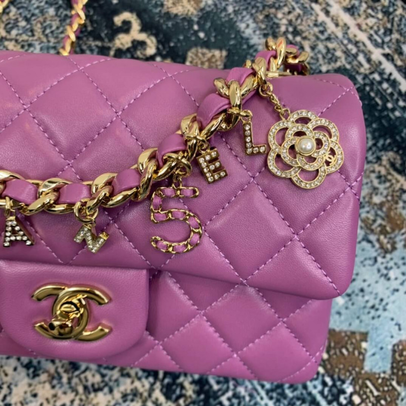 The shape like the Extra Mini Classic Bag. But the biggest reason why this bag is a must-have is because of the gorgeous multi-charm. These charms are shimmering like gem-stones and they remind me of something – the charms remind me of the Chanel Valentine Bag. Are they the same charms?