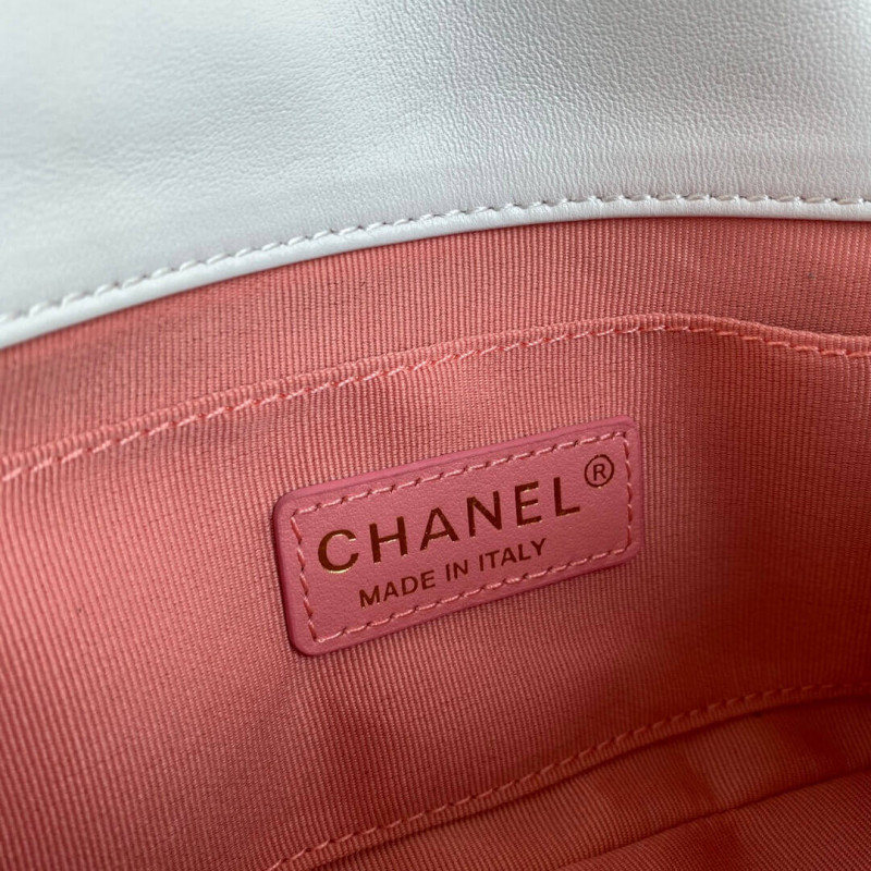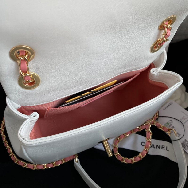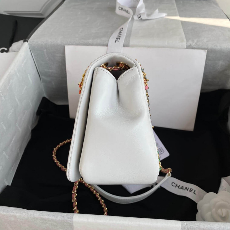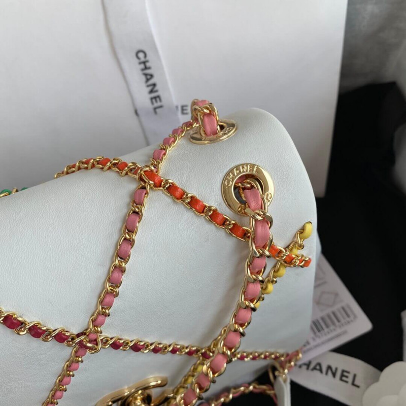 The woven chain link has been reinvented. Chanel made them smaller and cover them all over the body of the bag to create the iconic diamond pattern. They mix the chains with different colors like purple, pink, yellow and baby blue to make them eye-catching.