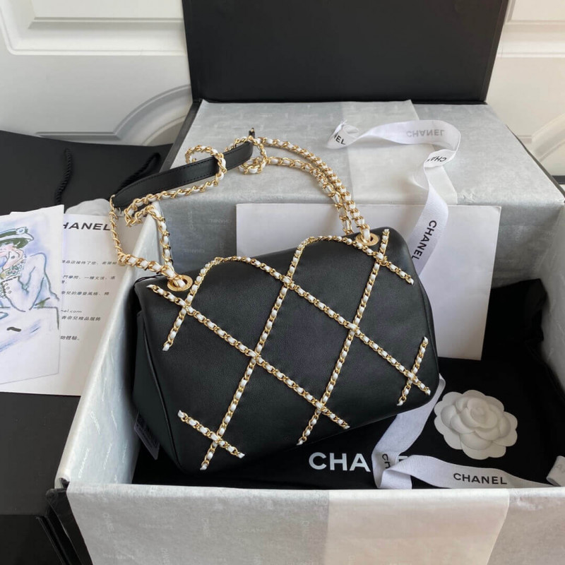 The woven chain link has been reinvented. Chanel made them smaller and cover them all over the body of the bag to create the iconic diamond pattern. They mix the chains with different colors like purple, pink, yellow and baby blue to make them eye-catching.